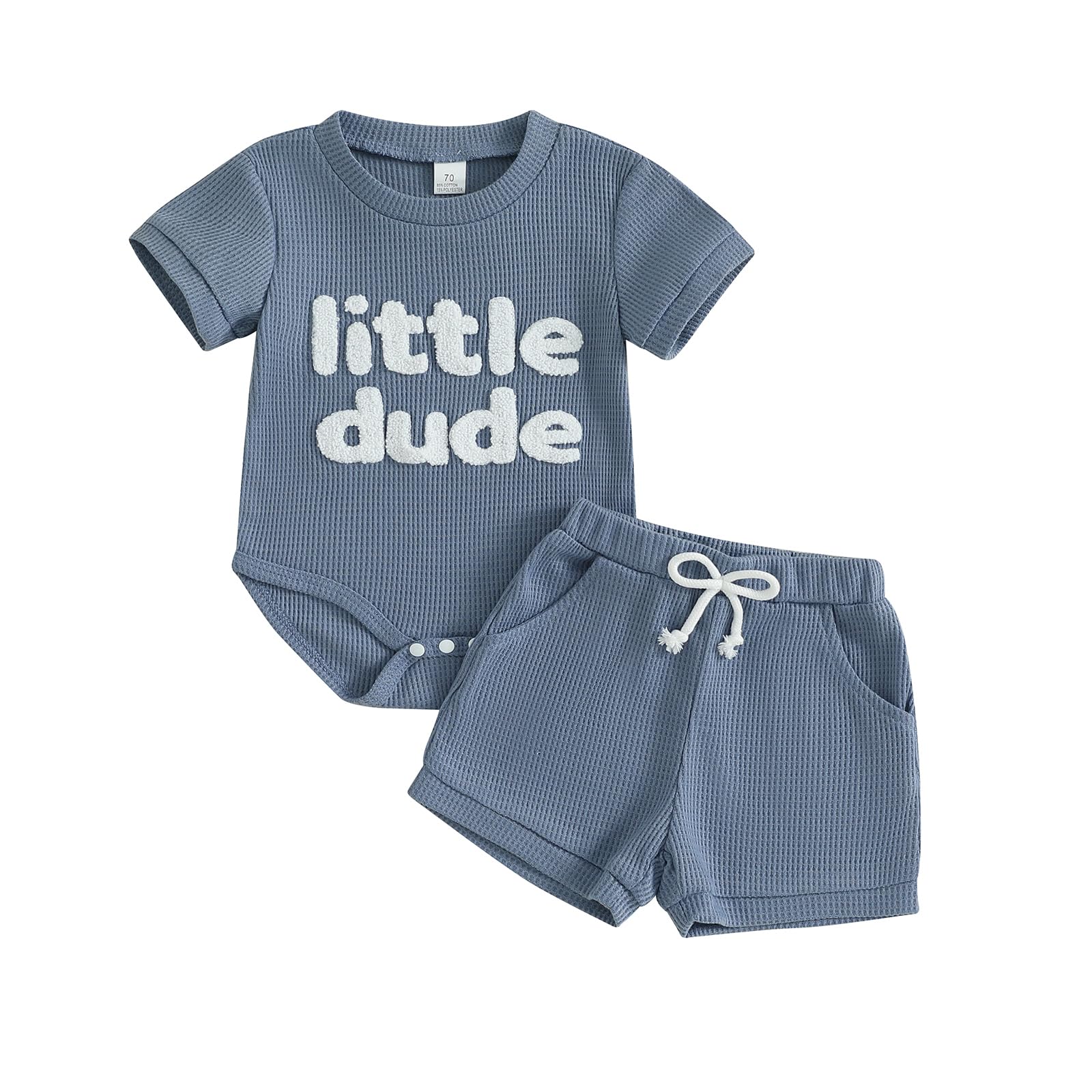 MERSARIPHY Newborn Baby Boy Summer Clothes Mama's Boy Little Dude Short Sleeve Romper Shorts Set Infant Waffle Knit Outfit