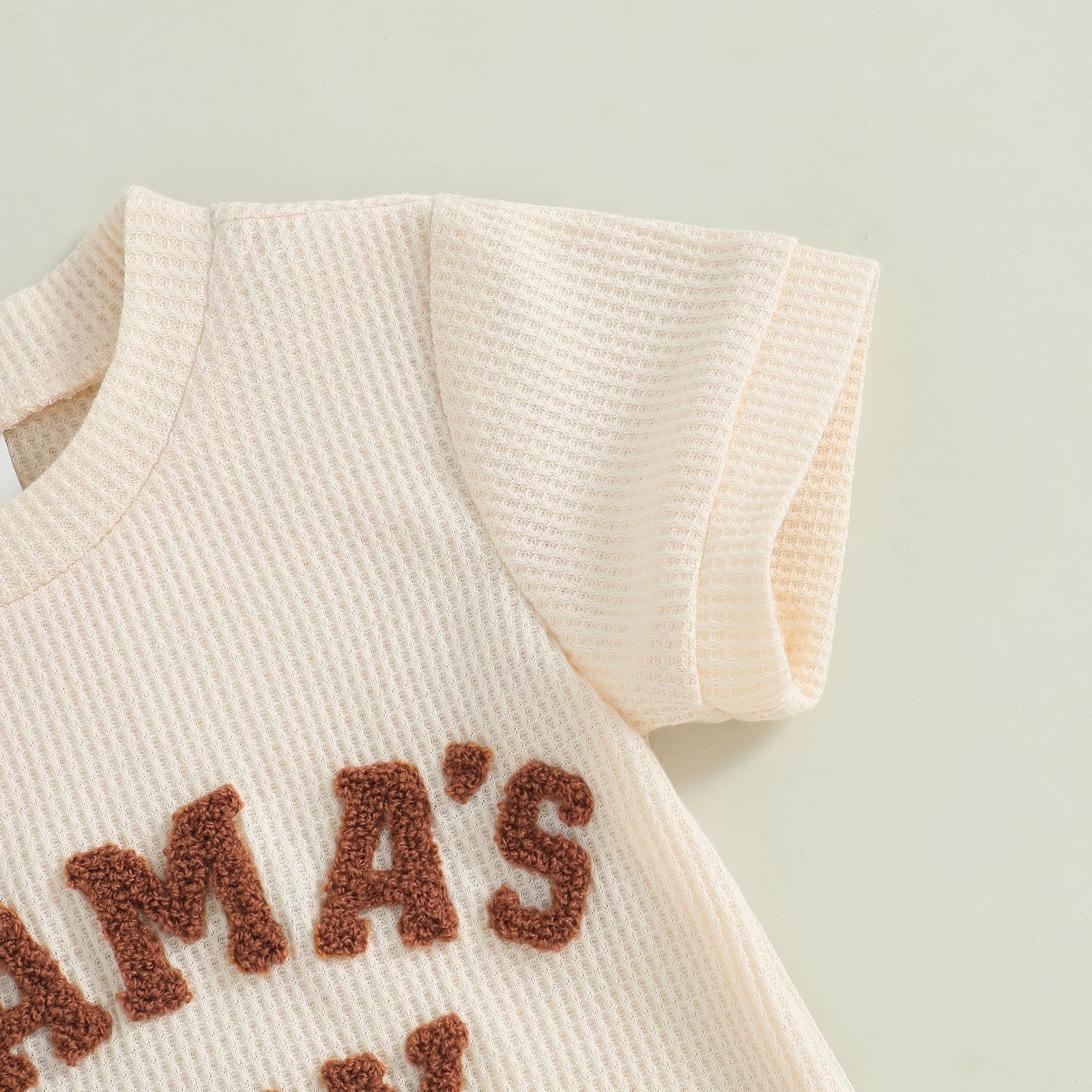 Mamas Boy Baby Waffle Short Sleeve Romper and Solid Shorts Set