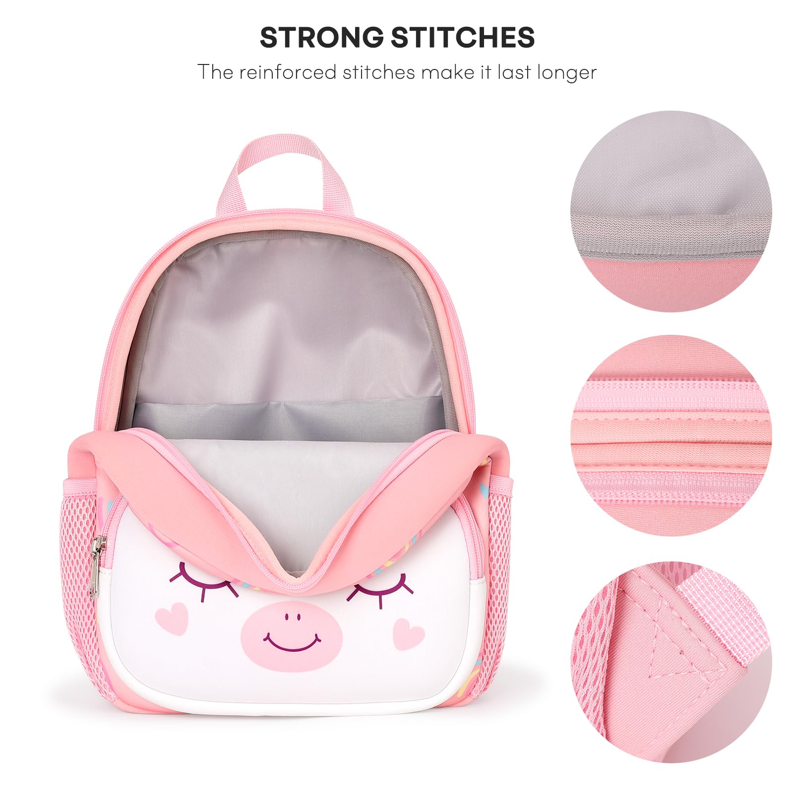 - 【MATERIAL】 Safe for your lovely baby. It's made of environmentally friendly material that is water-resistant, elastic and soft neoprene material. The back of the kids backpack is lined with a sponge, so that the child can carry this cute school backpack very comfortable and relaxed.