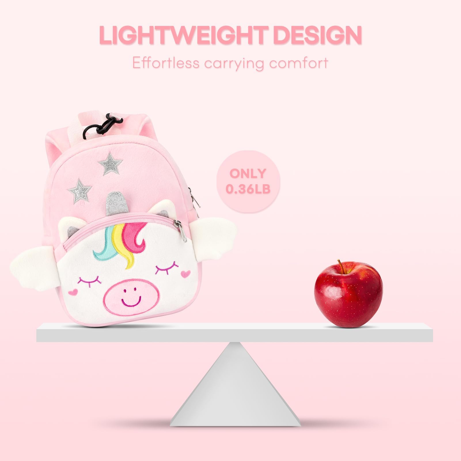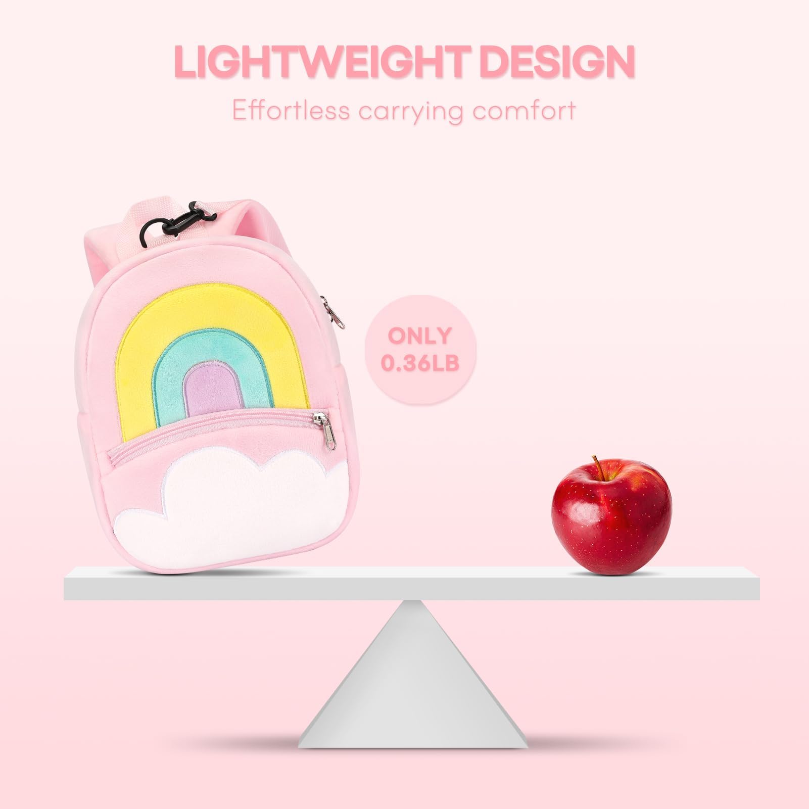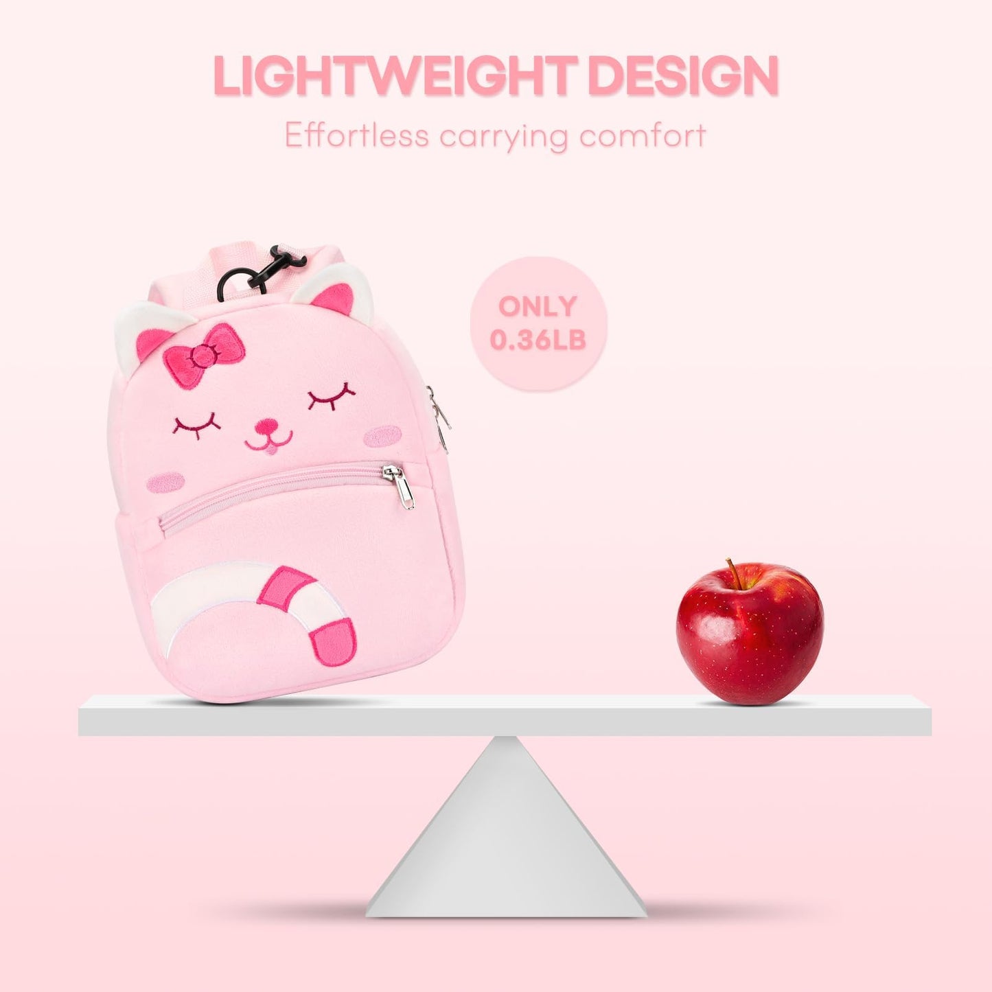 - 【LIGHT WEIGHT DESIGN】Only 0.36 lbs lightweight design and with a large pocket and cut animal shaped front pocket, this toddler backpack for girls 2-4 offers ample space for small diapers, toys, water bottles, cloths, pants snacks,etc. Great as a kids travel backpack for airplane.