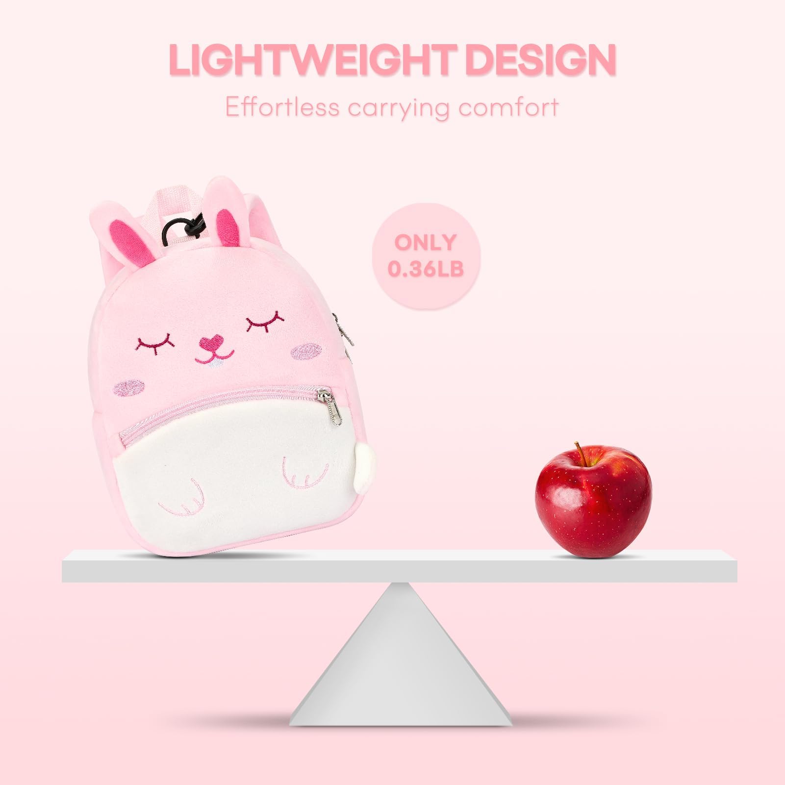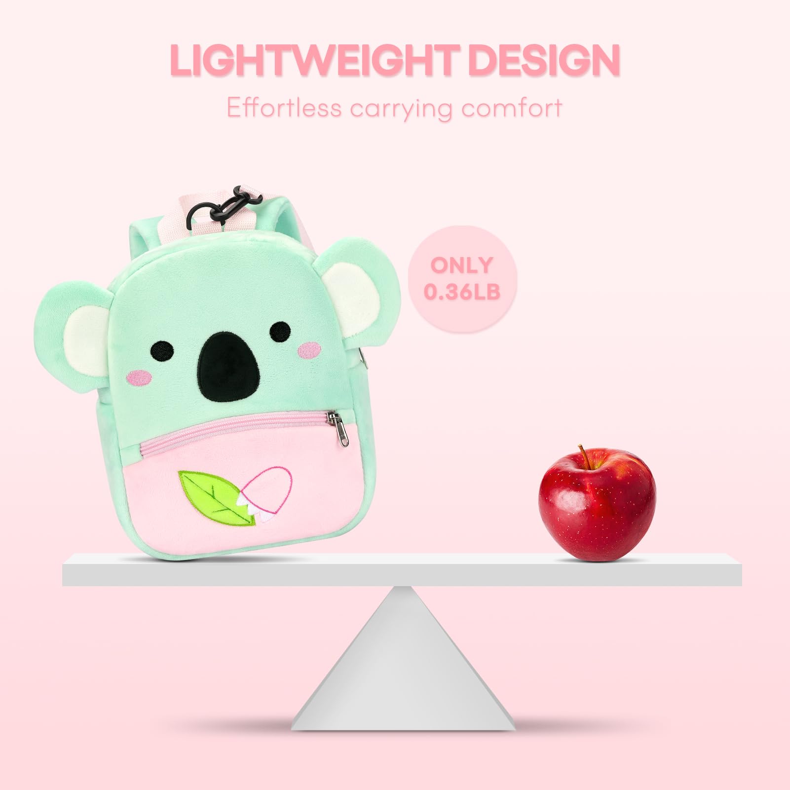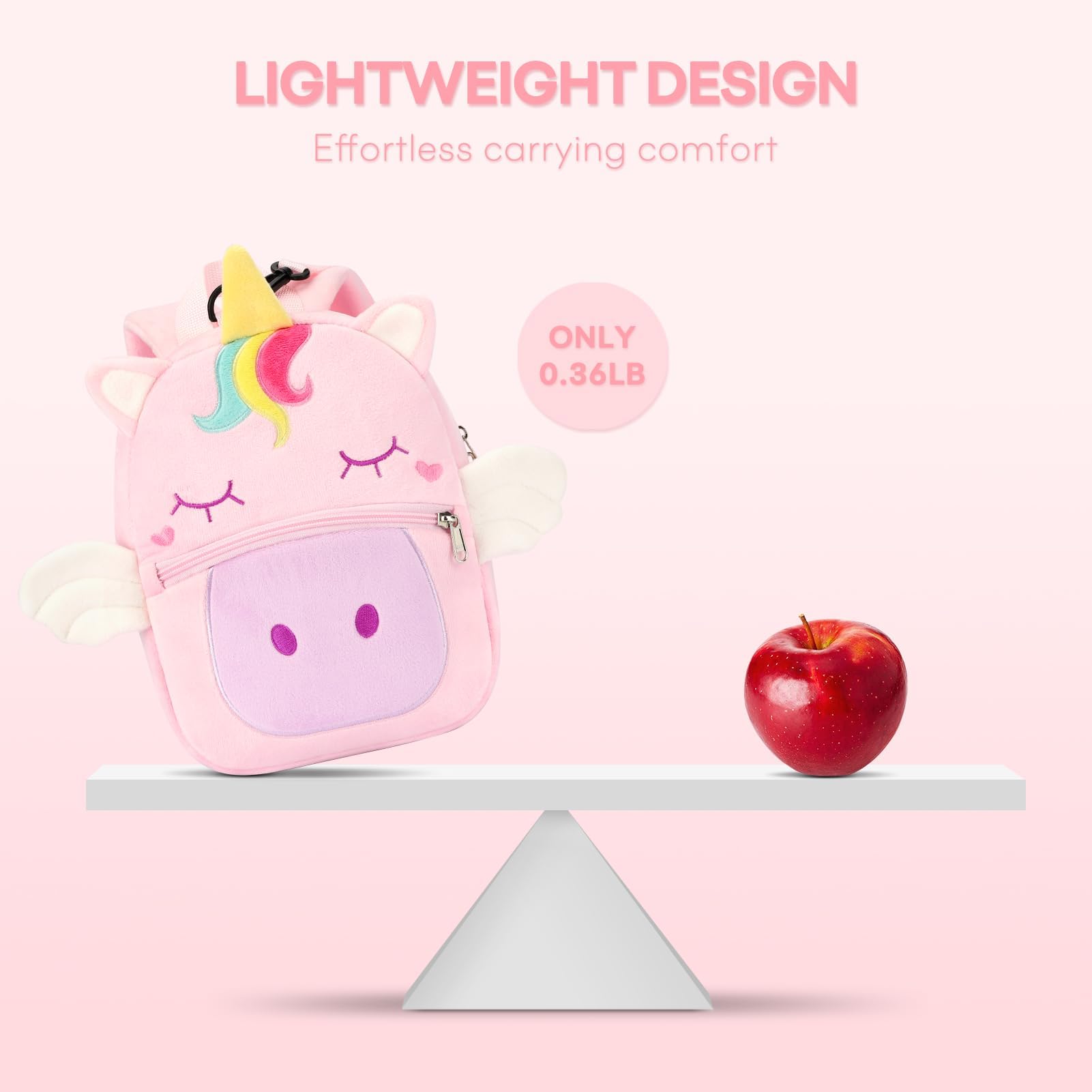 - 【LIGHT WEIGHT DESIGN】Only 0.36 lbs lightweight design and with a large pocket and cut animal shaped front pocket, this toddler backpack for girls 2-4 offers ample space for small diapers, toys, water bottles, cloths, pants snacks,etc. Great as a kids travel backpack for airplane.