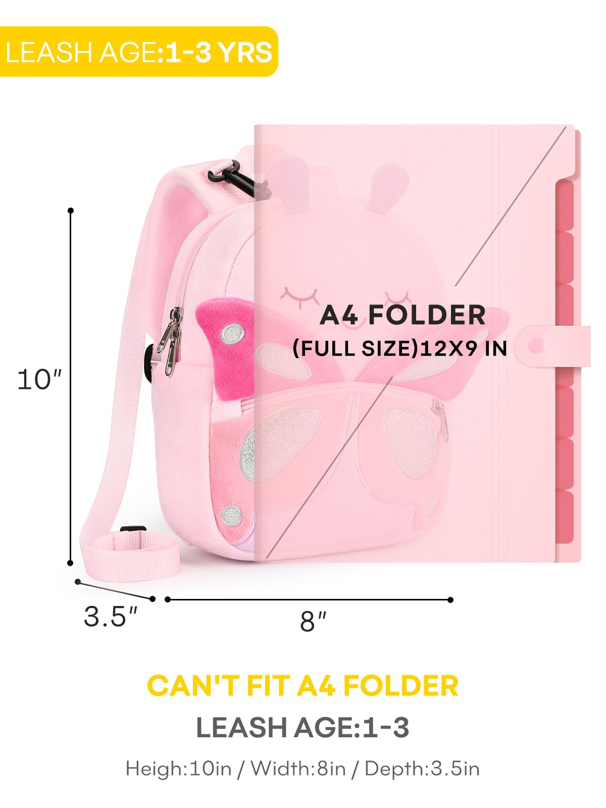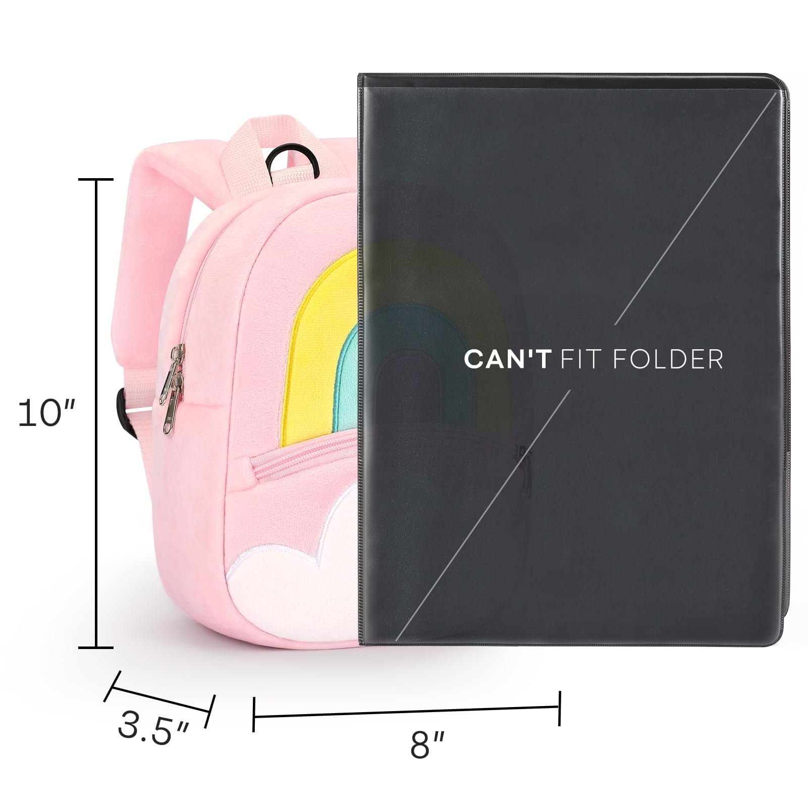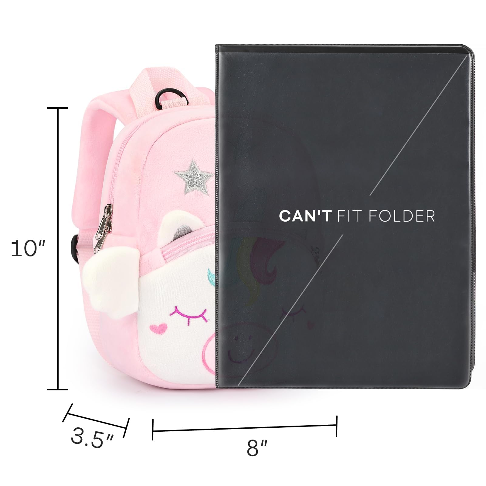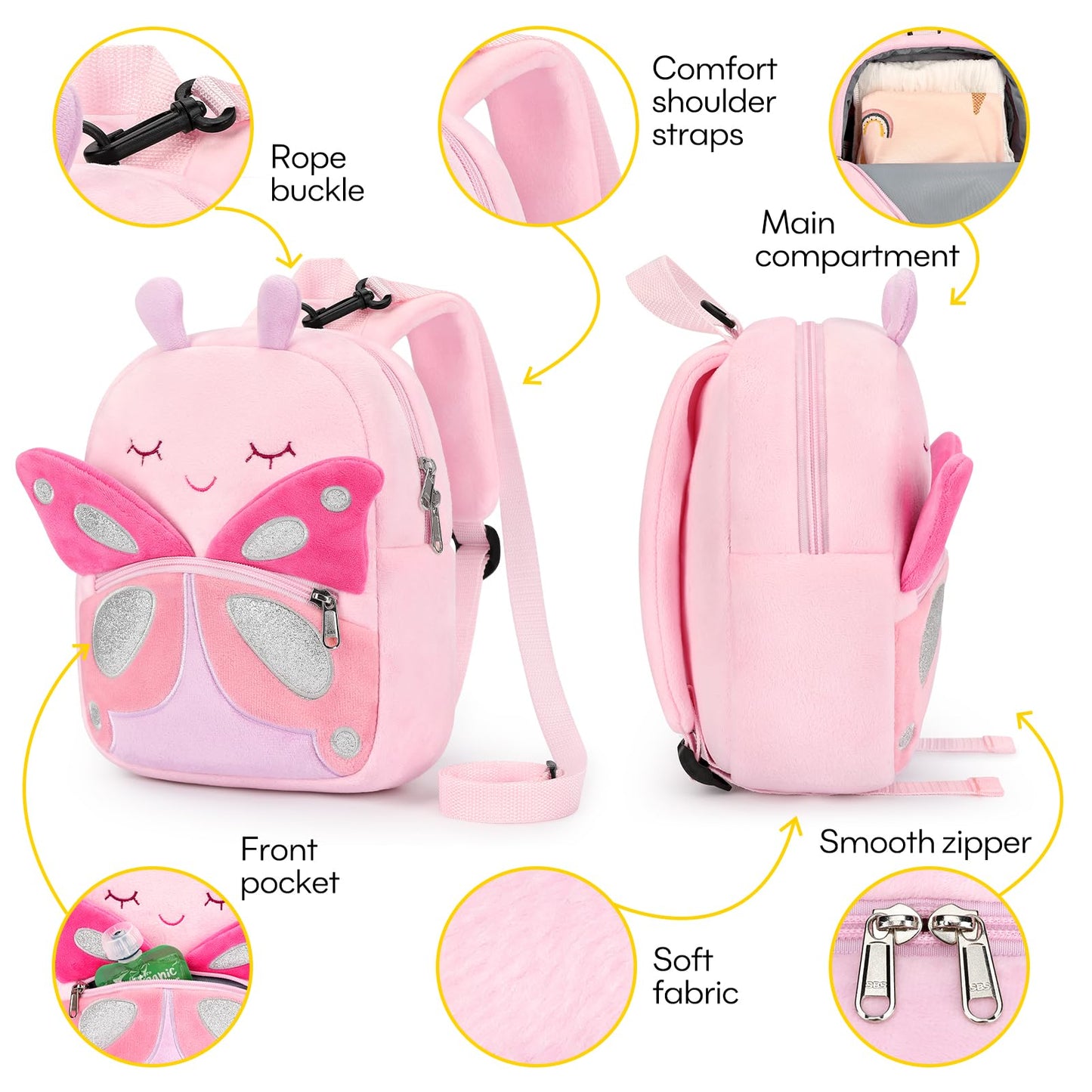 - 【DIMENSION】 This toddler girl backpack measures 8 x 3.5 x 10 inches. It's the perfect size for kids ages 1~3 years to go to preschool or travel.