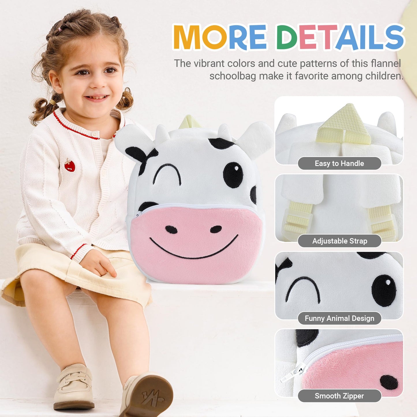 MICHLEY Toddler Backpack Plush Animal SchoolBag Cartoon Girls Travel Bag Mini Baby Daypack for Kids Kindergarten Pre School Bags, Cow