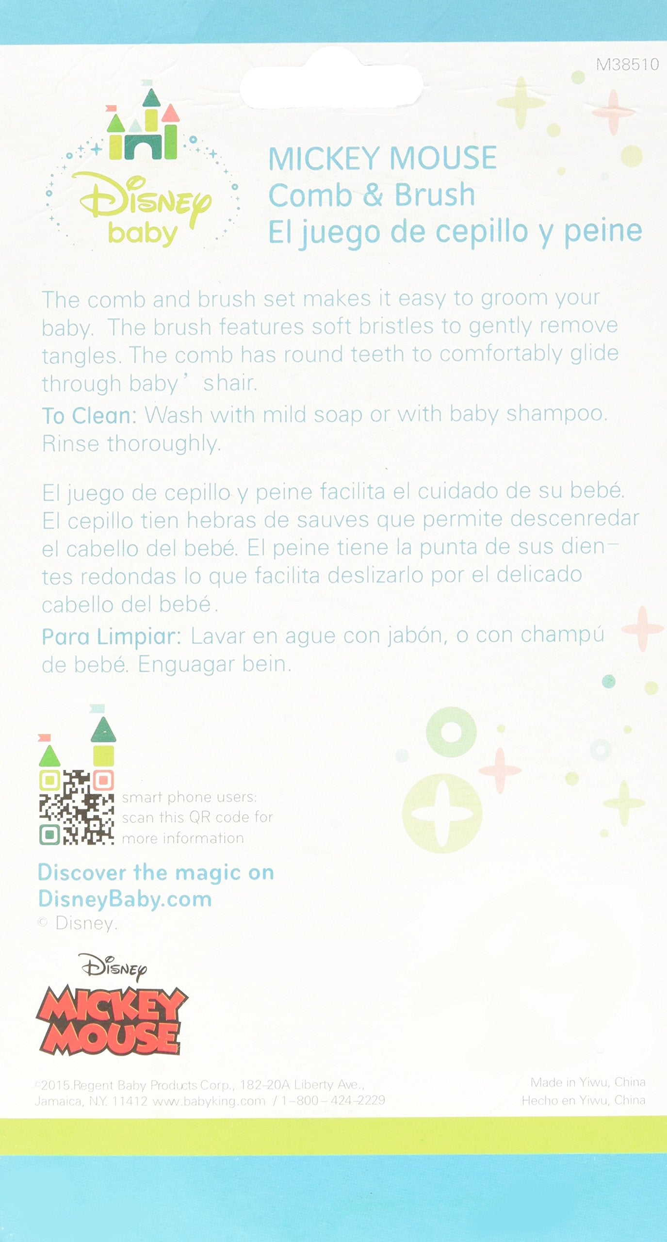 Mickey Mouse Comb & Brush Set. Brush and Comb Set with gentle bristles featuring baby's favorite characters. Available from Regent Baby Products. Treating your baby royally since 1946.