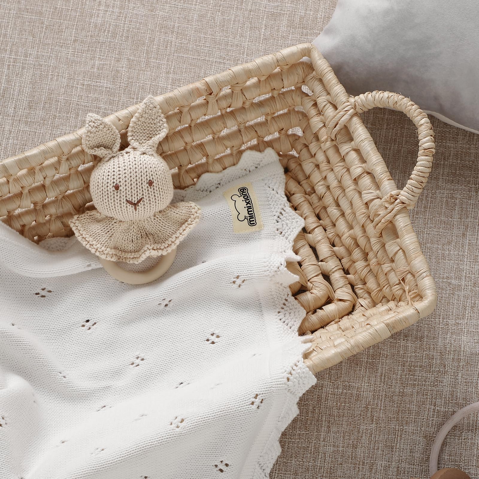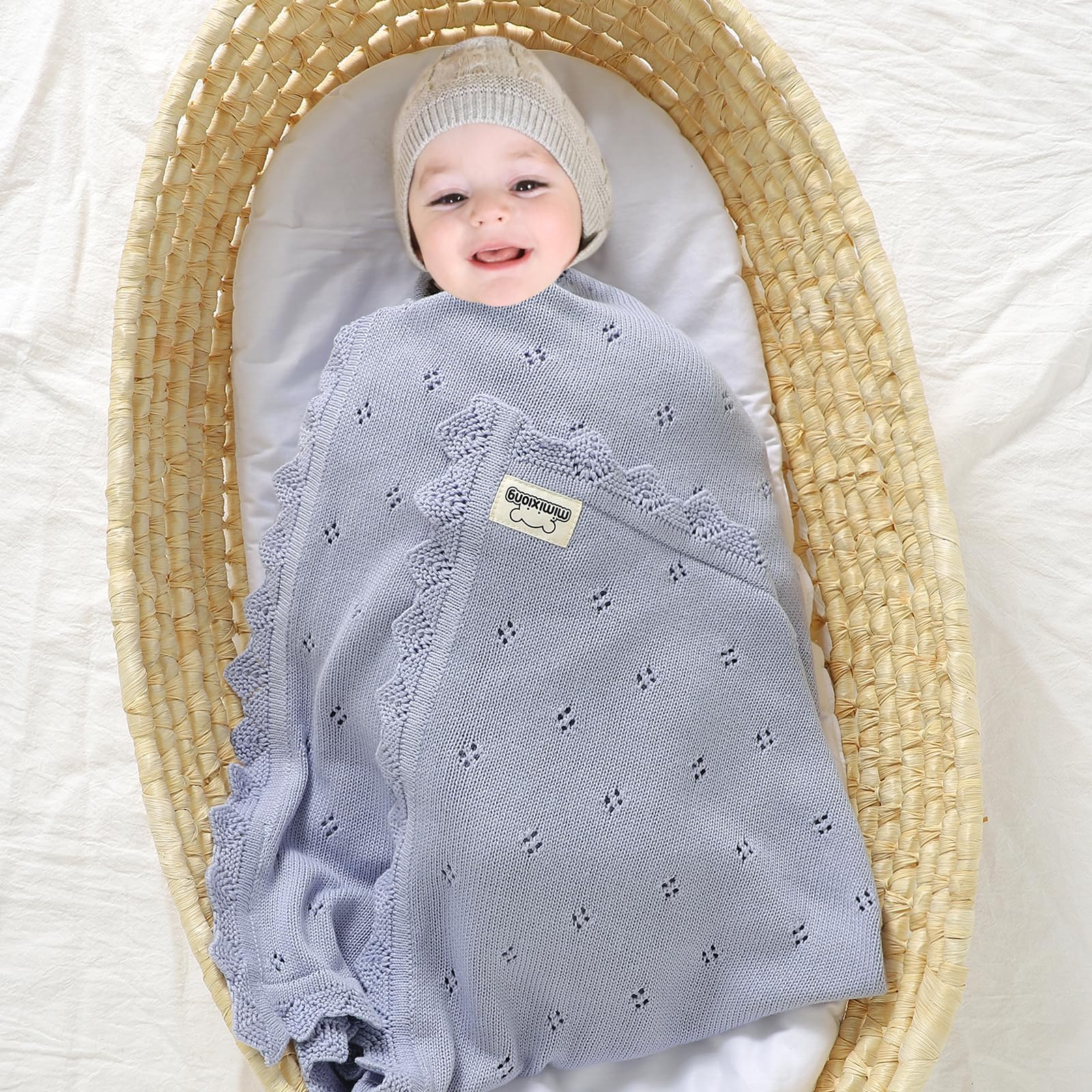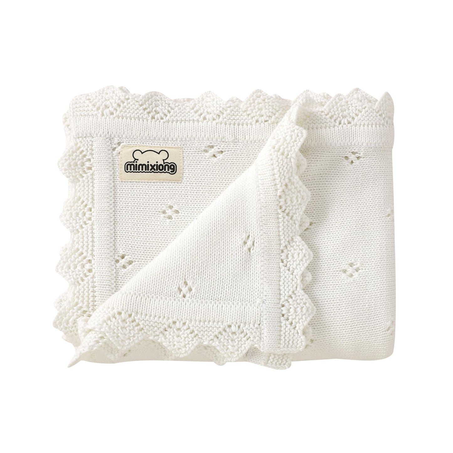 mimixiong Cotton Baby Blanket Knitted Crochet Receiving Crib Nursery Swaddling Blankets for Newborn Baby Boy Girl Off White 30x40 Inch