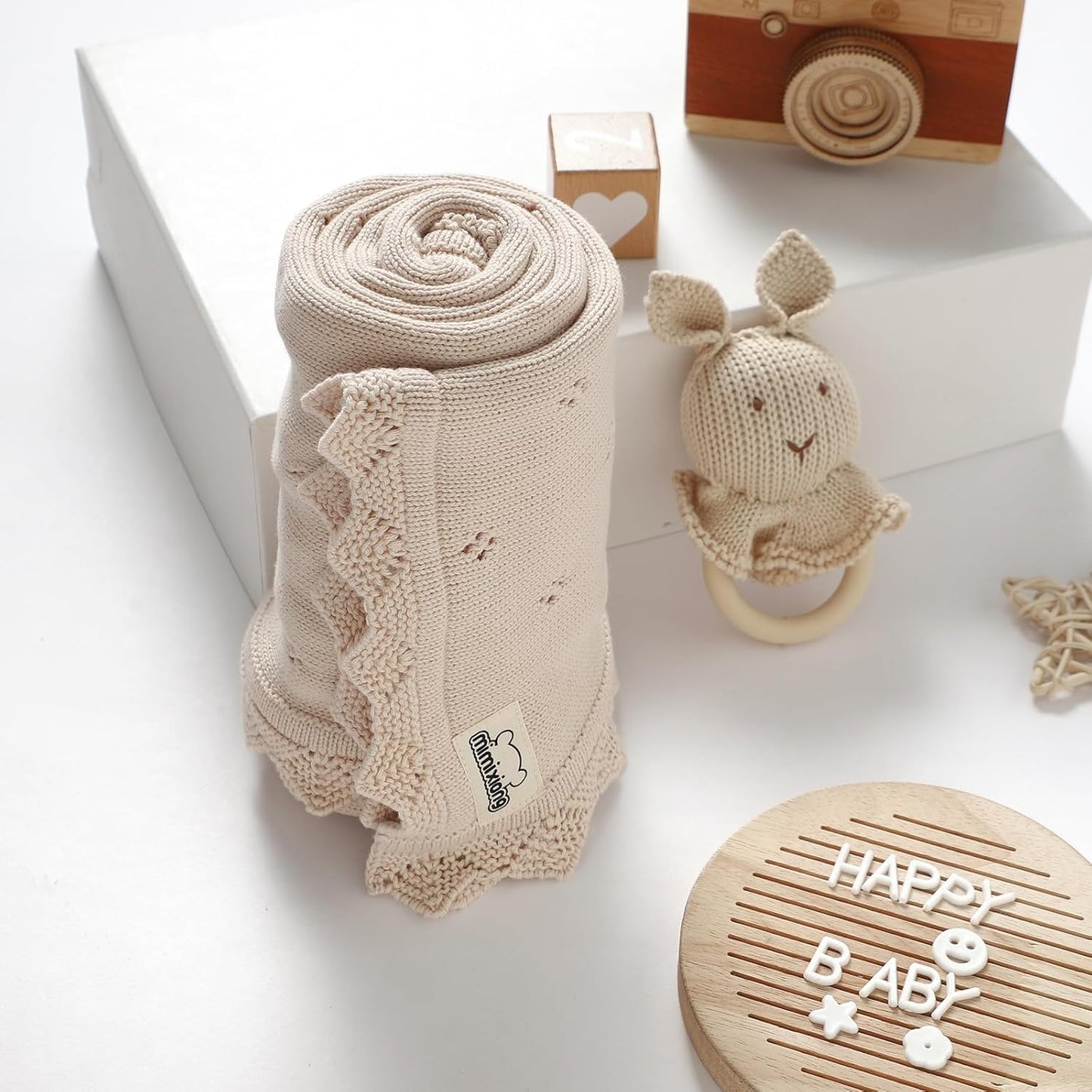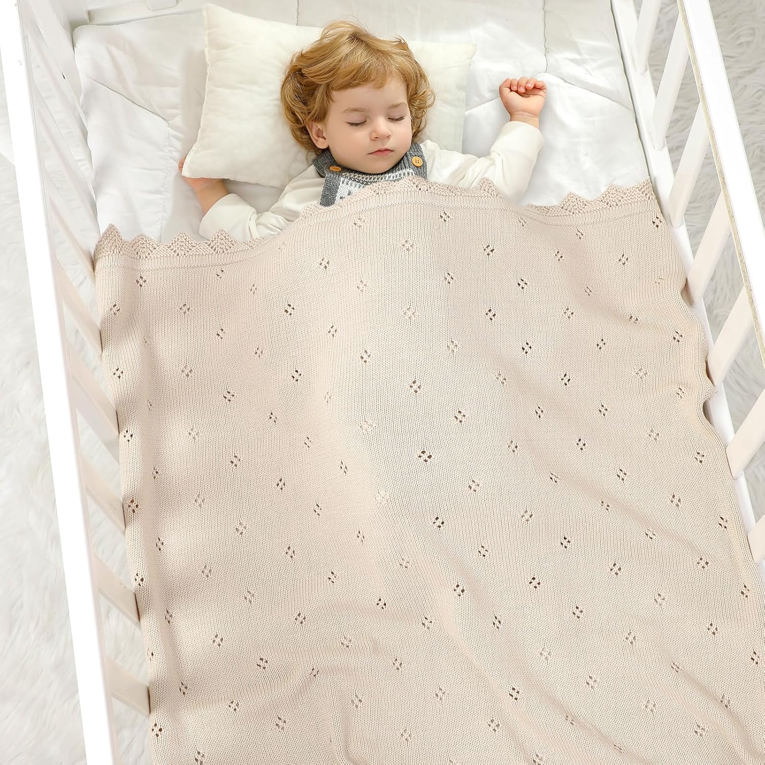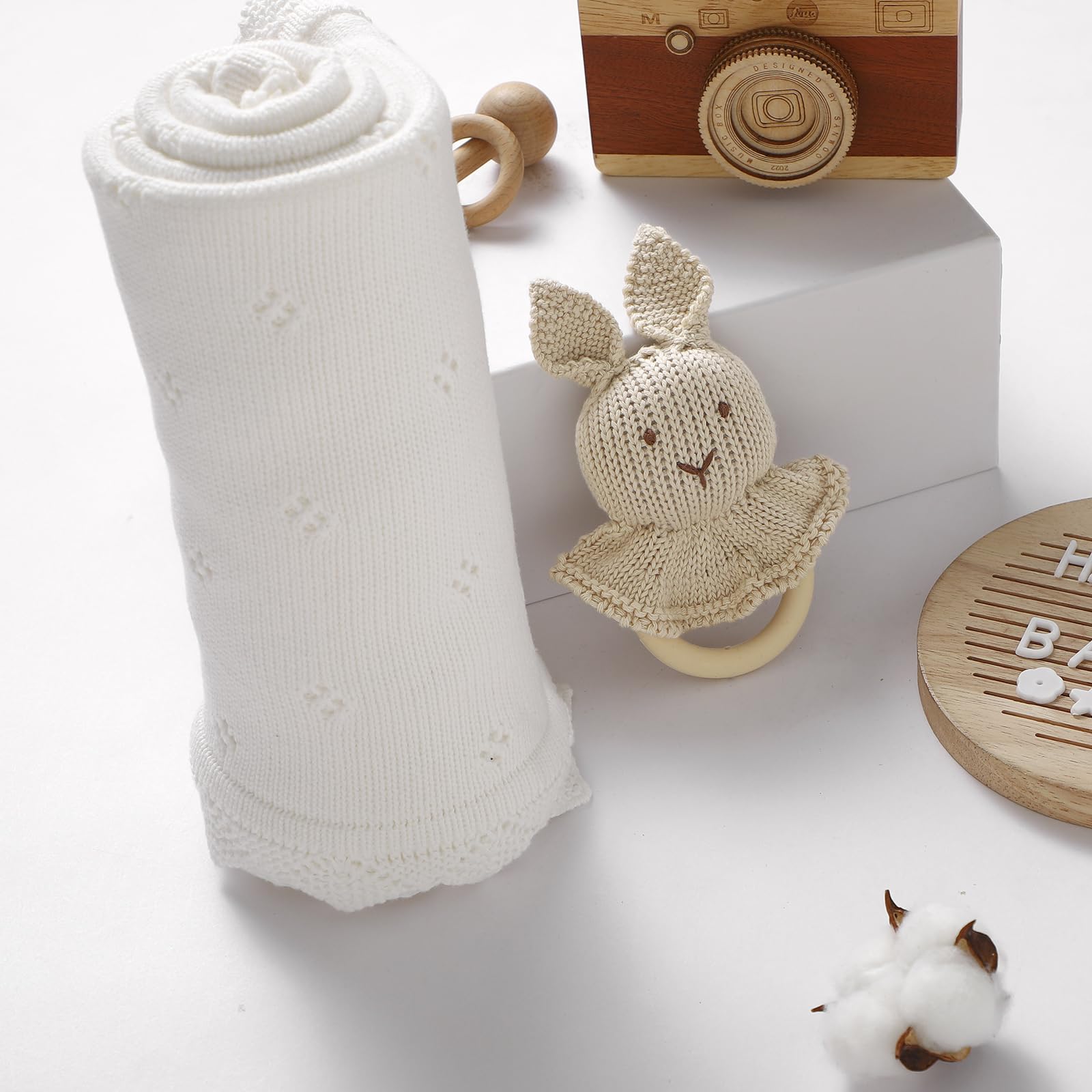 mimixiong Cotton Baby Blanket Knitted Crochet Receiving Crib Nursery Swaddling Blankets for Newborn Baby Boy Girl Off White 30x40 Inch