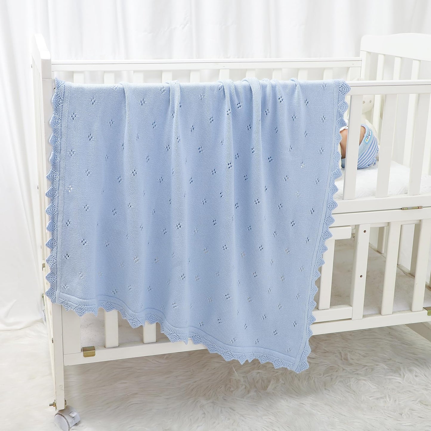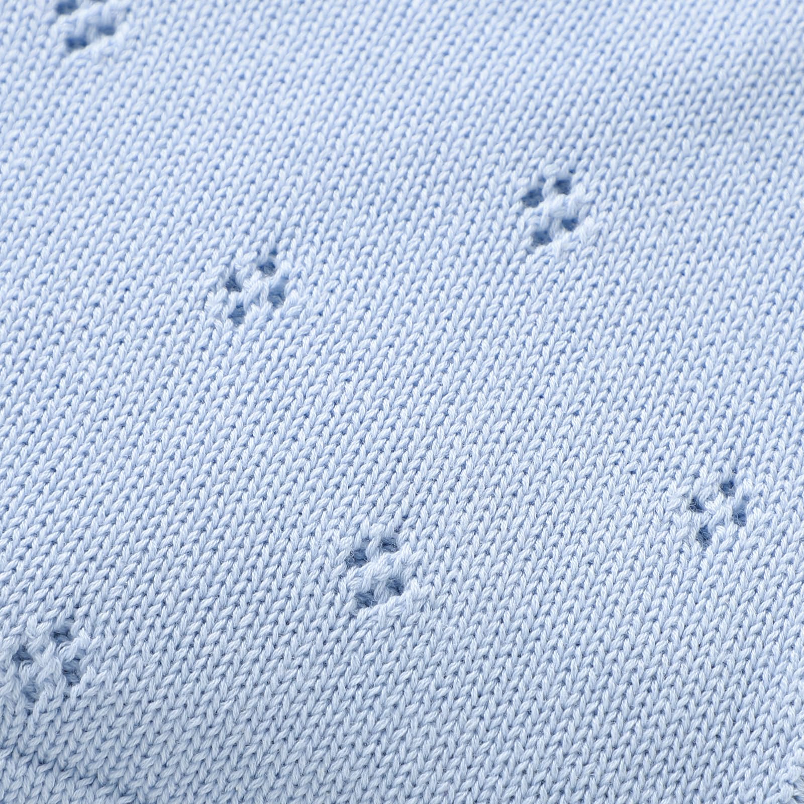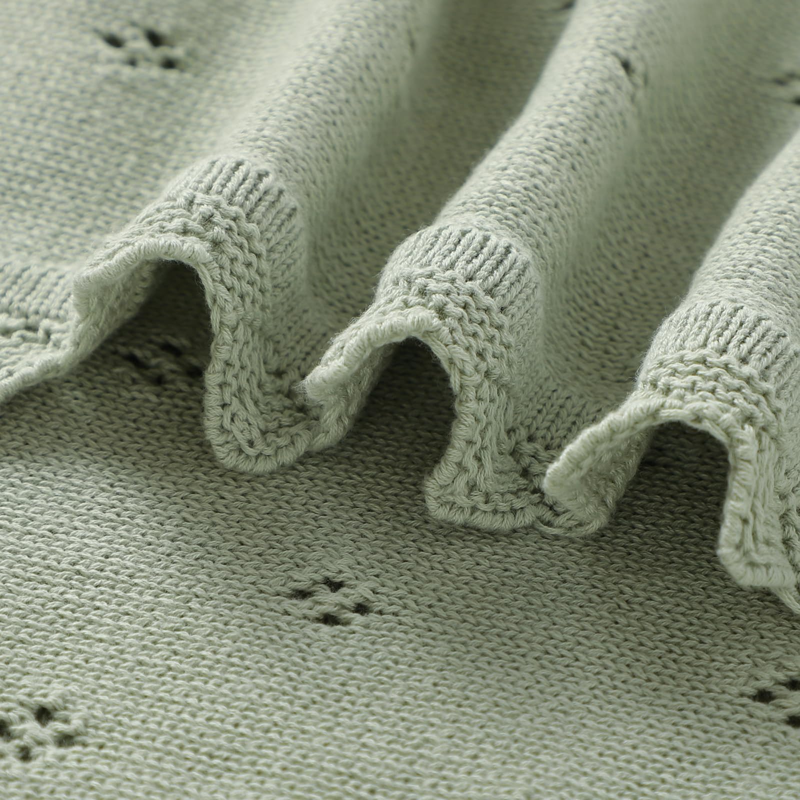 - Style:baby blanket that feels soft and high quality. It is tightly woven and has a bit of weight to it, while still remaining flowy with a nice drape and the periodic holes ,just in case of suffocation risk.