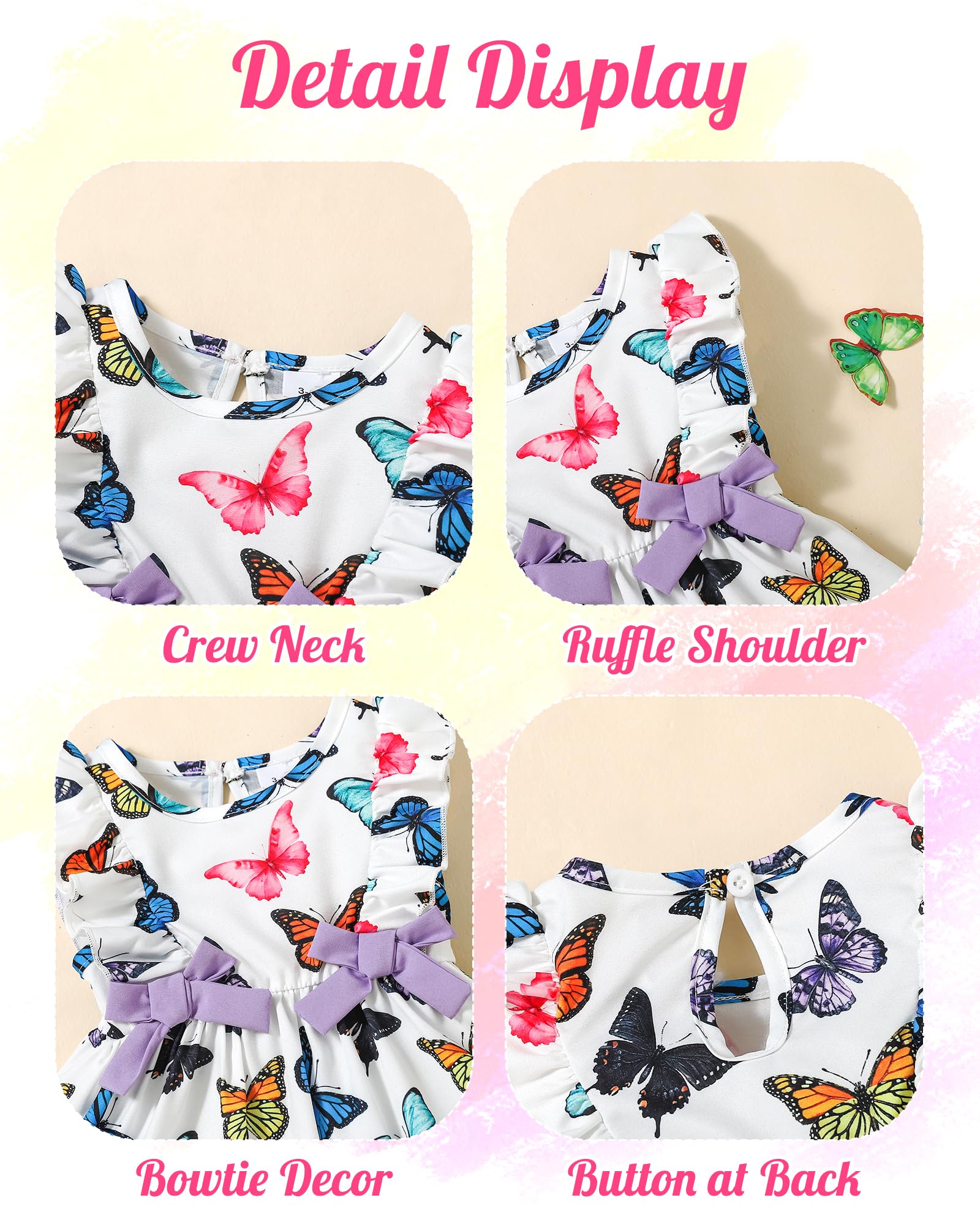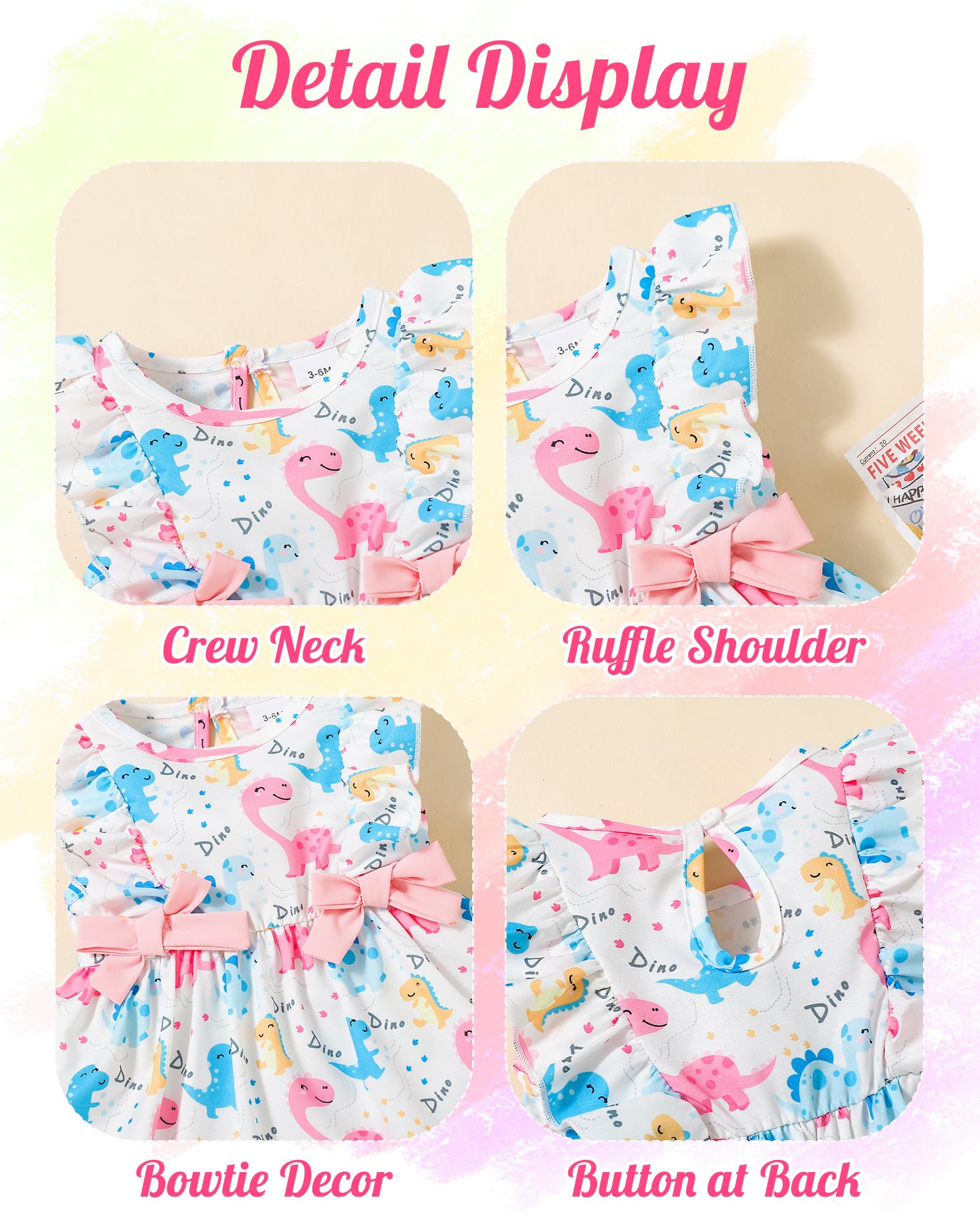 - Trendy Designs: this baby girls' dresses features adorable, eye-catching prints like floral, unicorn, and playful patterns (e.g., dinosaurs, bees, cats, butterfly), with ruffle sleeves, and two bows adorned the front of the skirt for an extra touch of sweetness