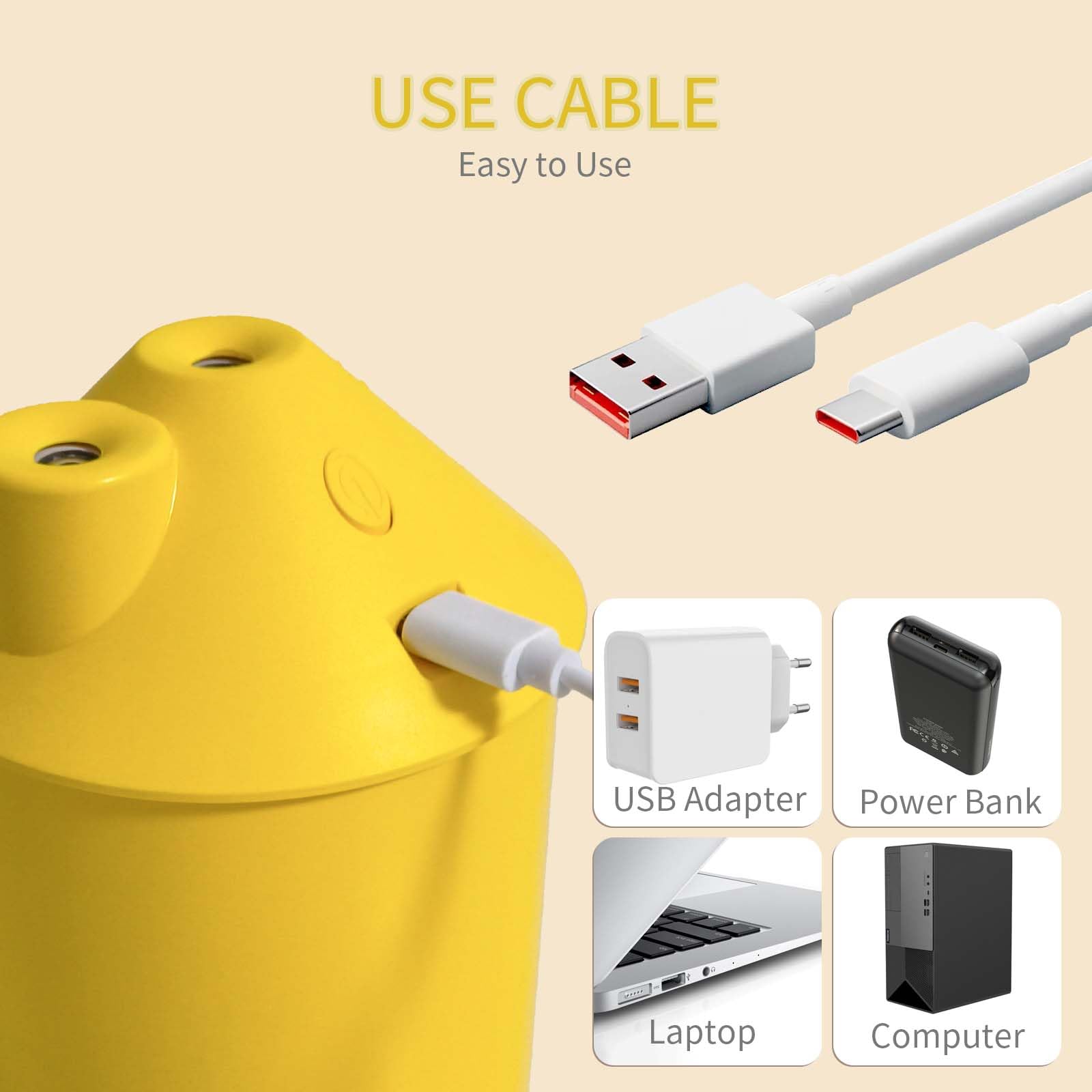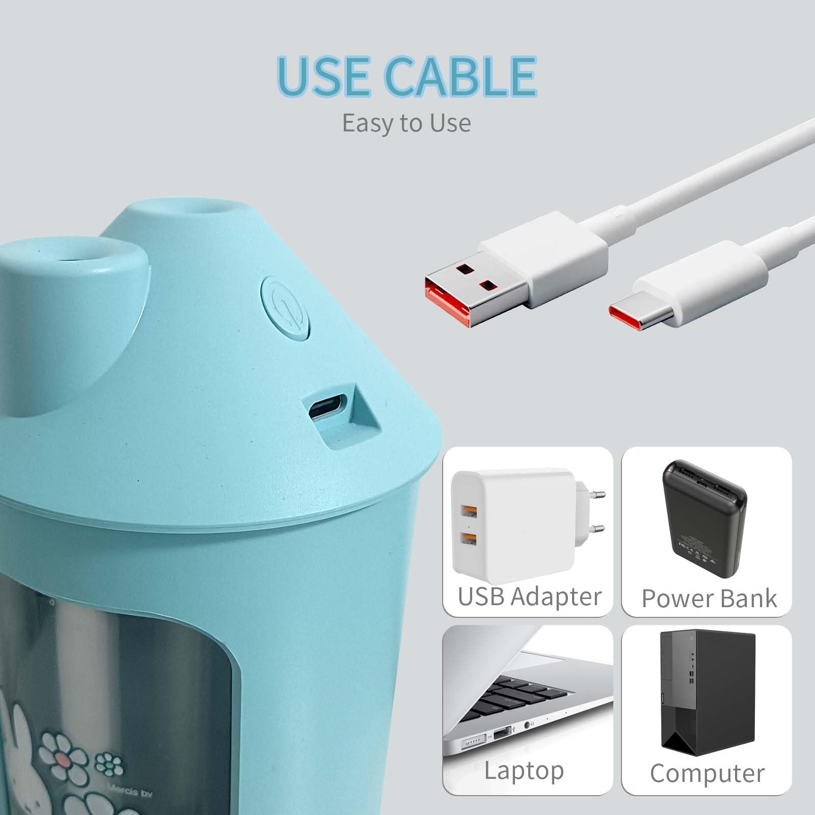 - Easy to Charge and Use: Powered by USB-C (Type-C) cable, compatible with any device with a USB port (USB adapter, power bank, laptop, computer). Turn on/off the night light or adjust the mist mode by simply touching the switch