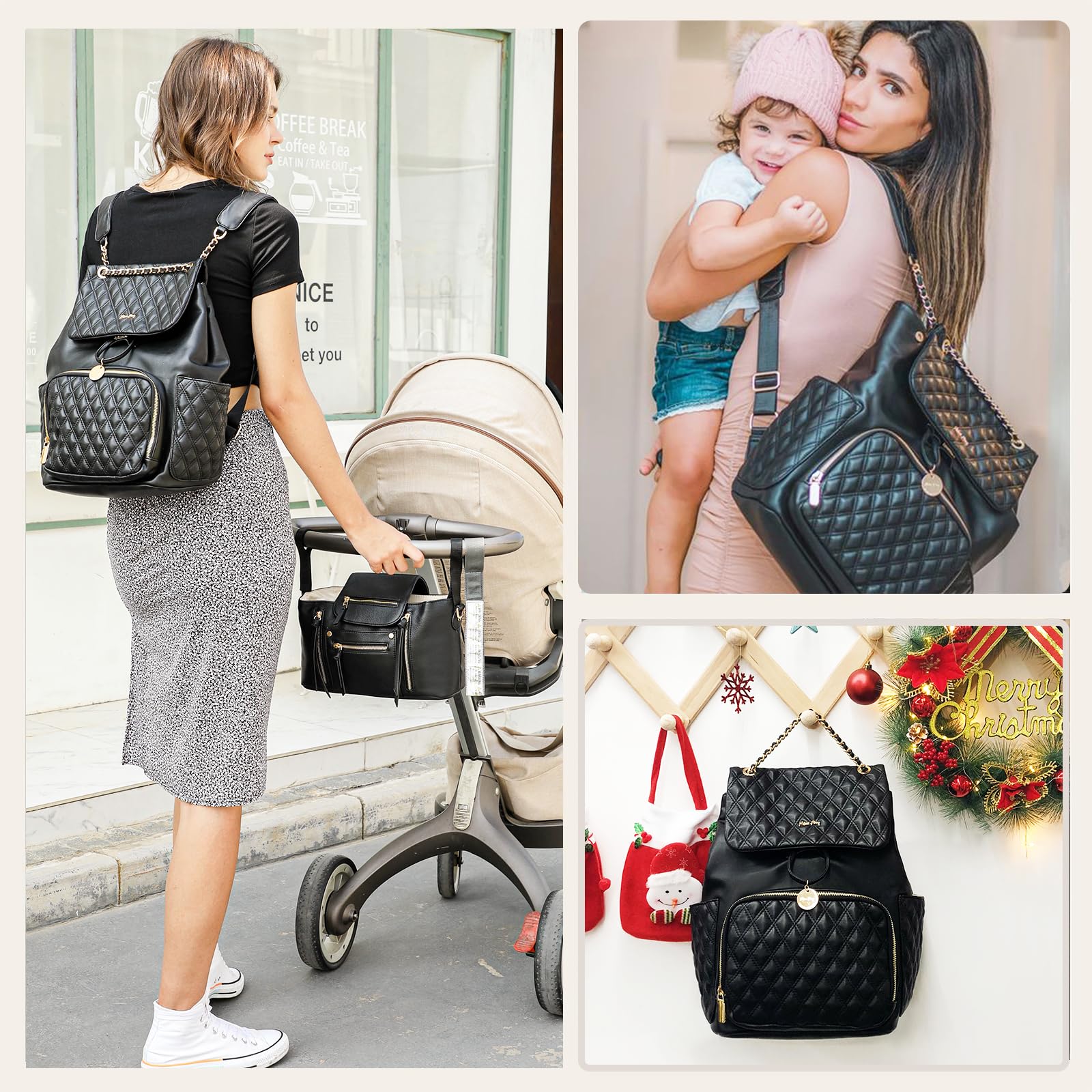 - ❤【Luxurious Materials】The Outer & Backpack straps material are crafted from soft, waterproof PU leather. Our diaper bag is gentle on the skin and free from unpleasant odors. The inner lining is made of wipeable nylon, while the backpack straps are padded for comfortable carrying. Changing pad--100% stain-resistant nylon. The 18K gold zipper and brand badge add a touch of elegance, and the 4 bottle warmers are made of thermal insulation materials to keep your baby's milk warm.