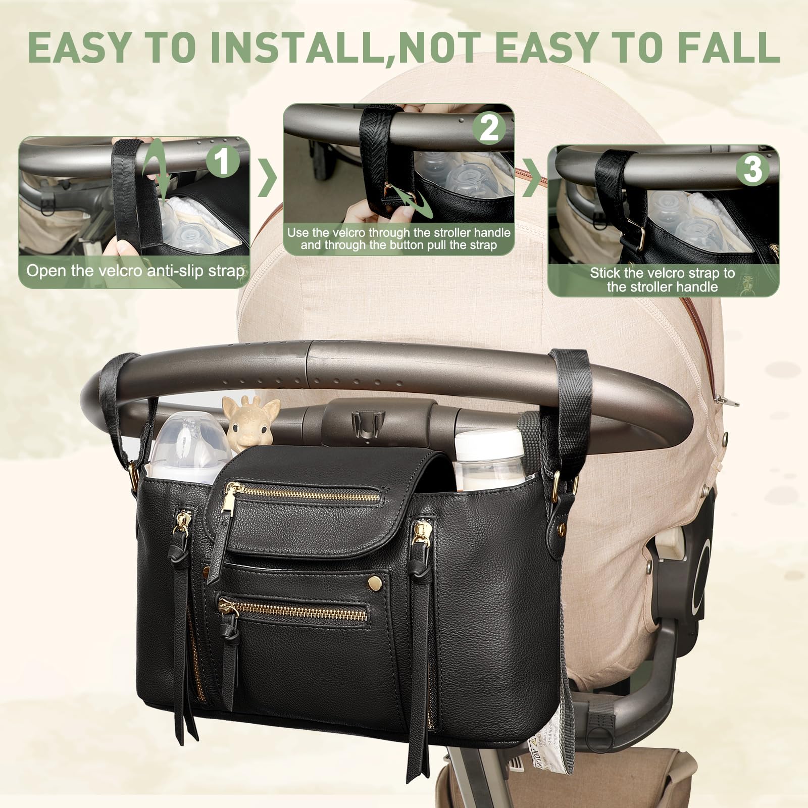 - ❤️【Fit Most Stroller】The stroller organizer bag with adjustable velcro strap fits most stroller bars and handles(single strollers, double strollers, umbrella strollers, and pet strollers). A wide velcro area allows for flexible attachment points.Enhance your parenting experience with our luxury stroller organizer bag. Stay organized, stylish, and prepared for any adventure with your little one. Make your daily strolls a breeze with this must-have accessory.
