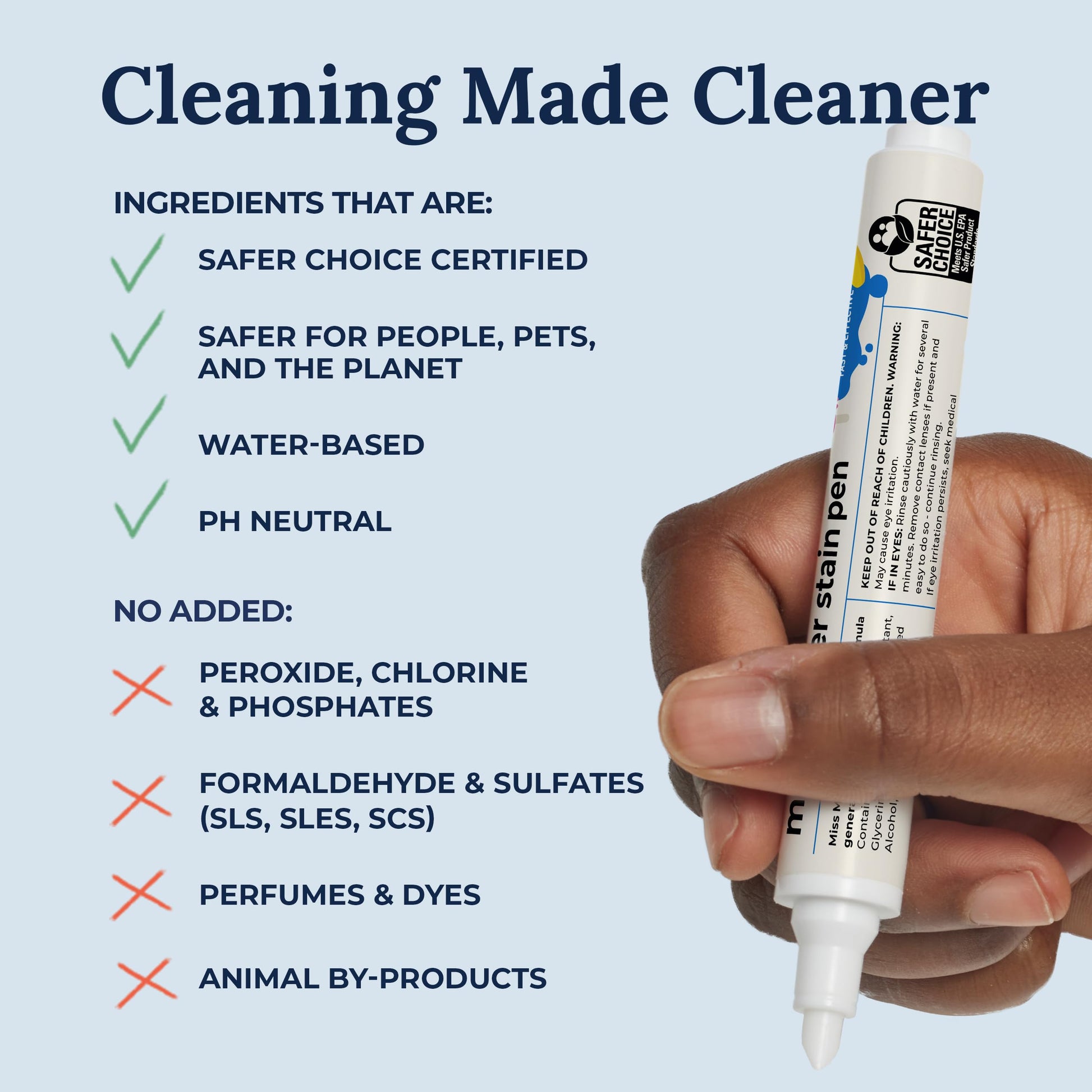 - SAFER CHOICE CERTIFIED Our stain remover is proudly EPA Safer Choice certified, giving you peace of mind that it meets your high standards for health and safety. Miss Mouth’s Messy Eater Stain Treater formula gets the job done while being a safer choice for you and your family.