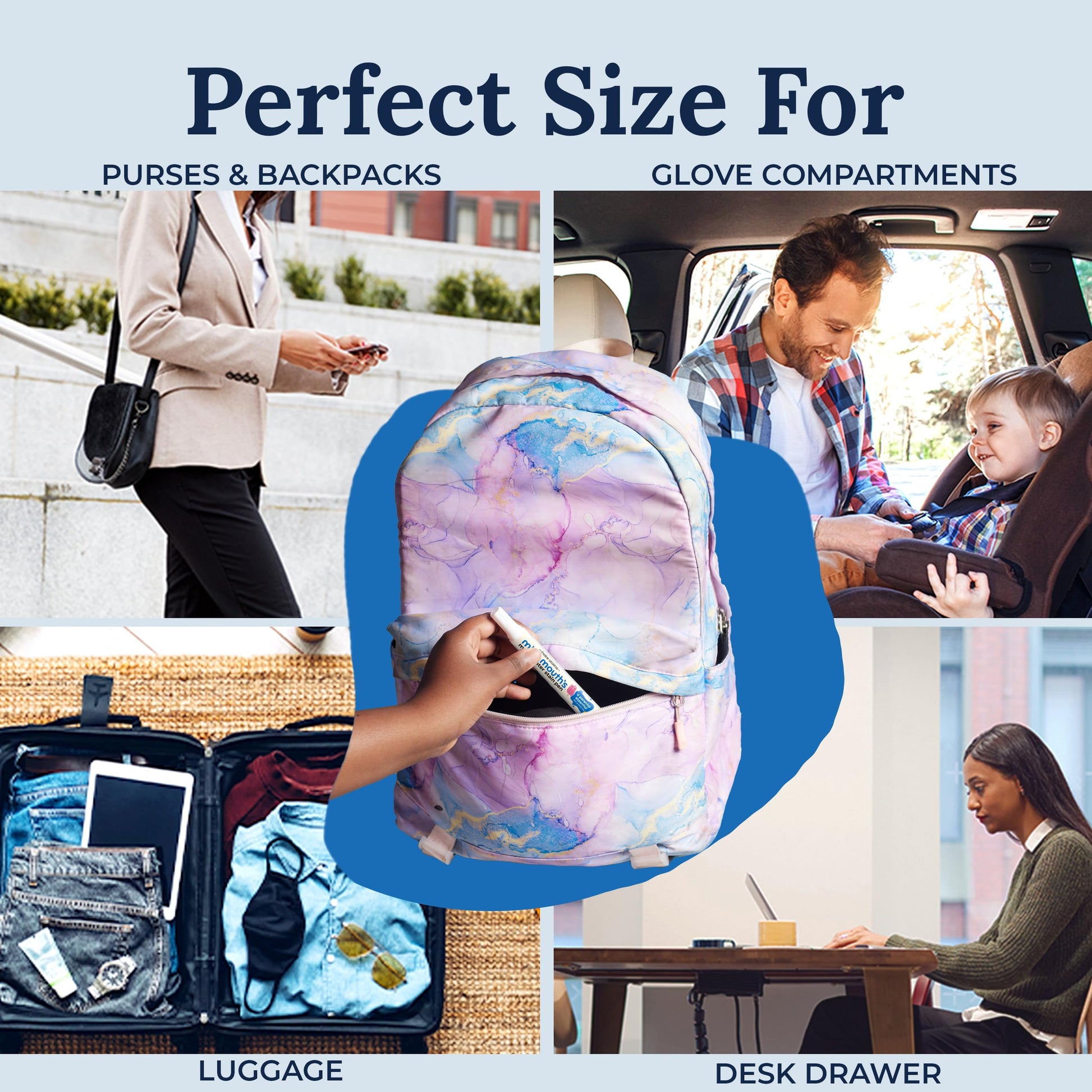 Description | The parental essential. A no-nonsense stain remover spray that quickly treats most stains your little mess maker produces. Yes -- most. | The all purpose life saver. An on-the-spot stain solution that rescues clothes, fabrics, and upholstery from life's inevitable accidents. | The wine lover's must-have. A fast-acting stain remover that busts spills & splatters from any fumbles involving your red or rosé. | The all purpose life saver. A multi-use refill for your 4 fl oz bottle for continuous savings from pesky spills, smears & stains. | The parental essential. A stain remover refill for your 4 fl oz bottle...because your mess maker will continue to have messy mishaps. |