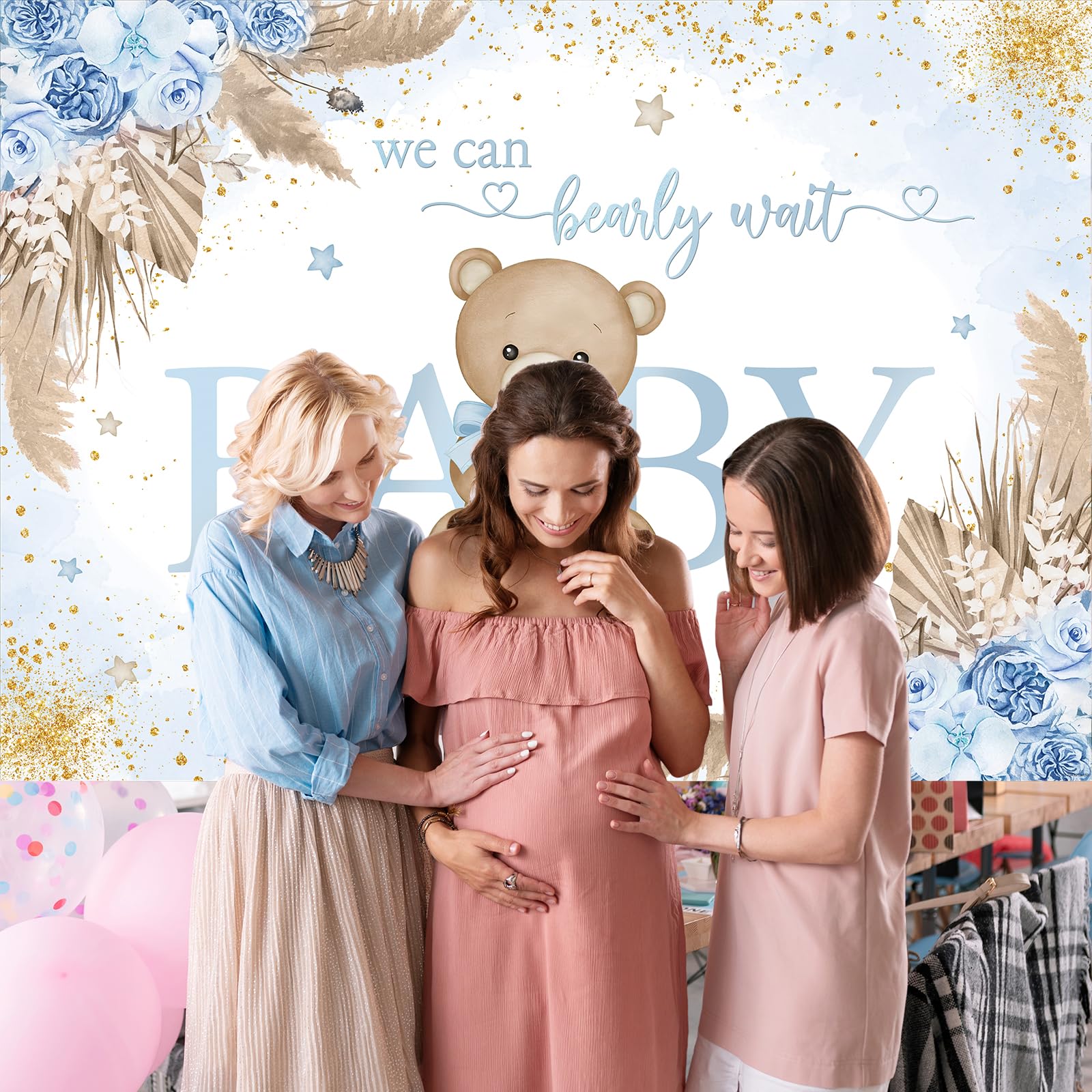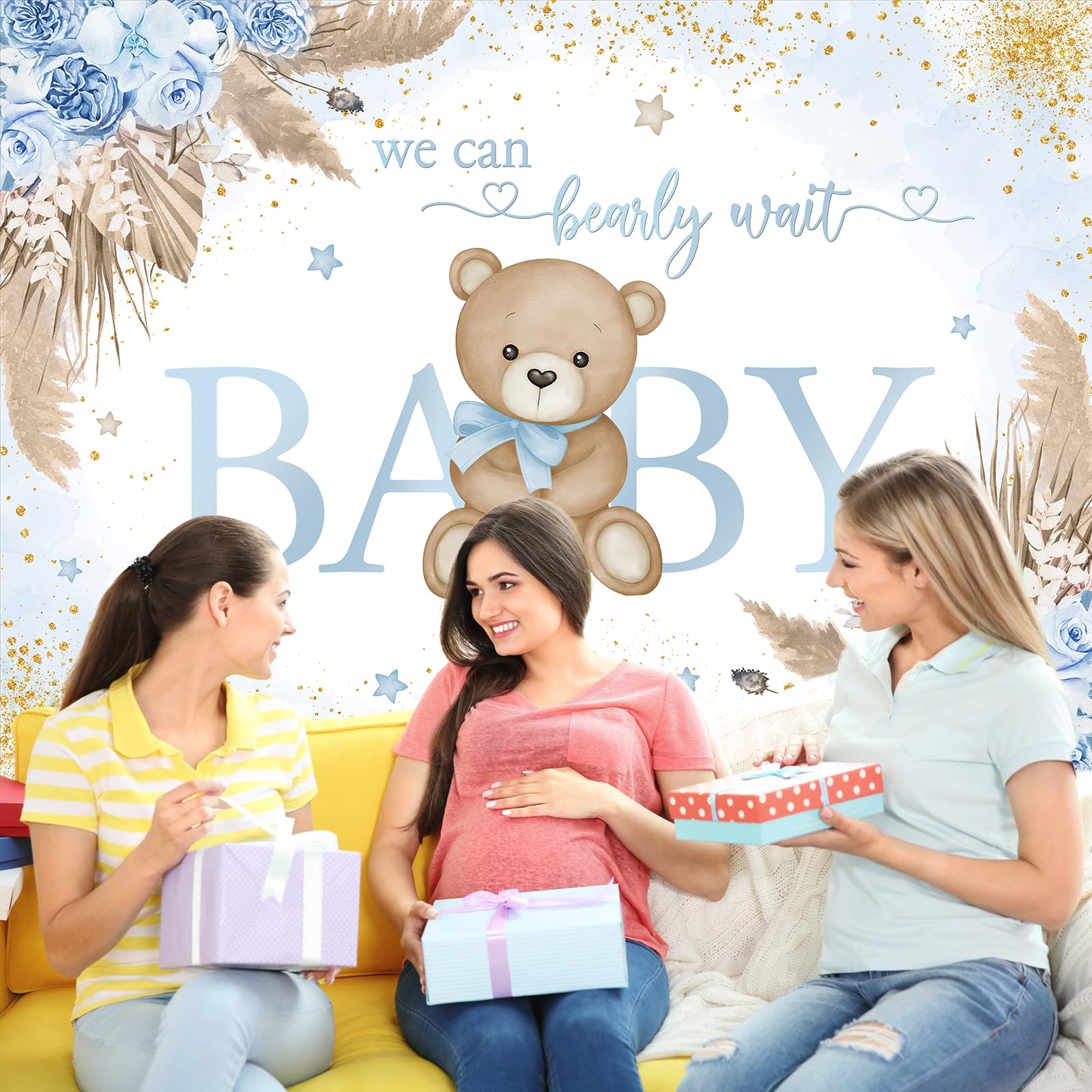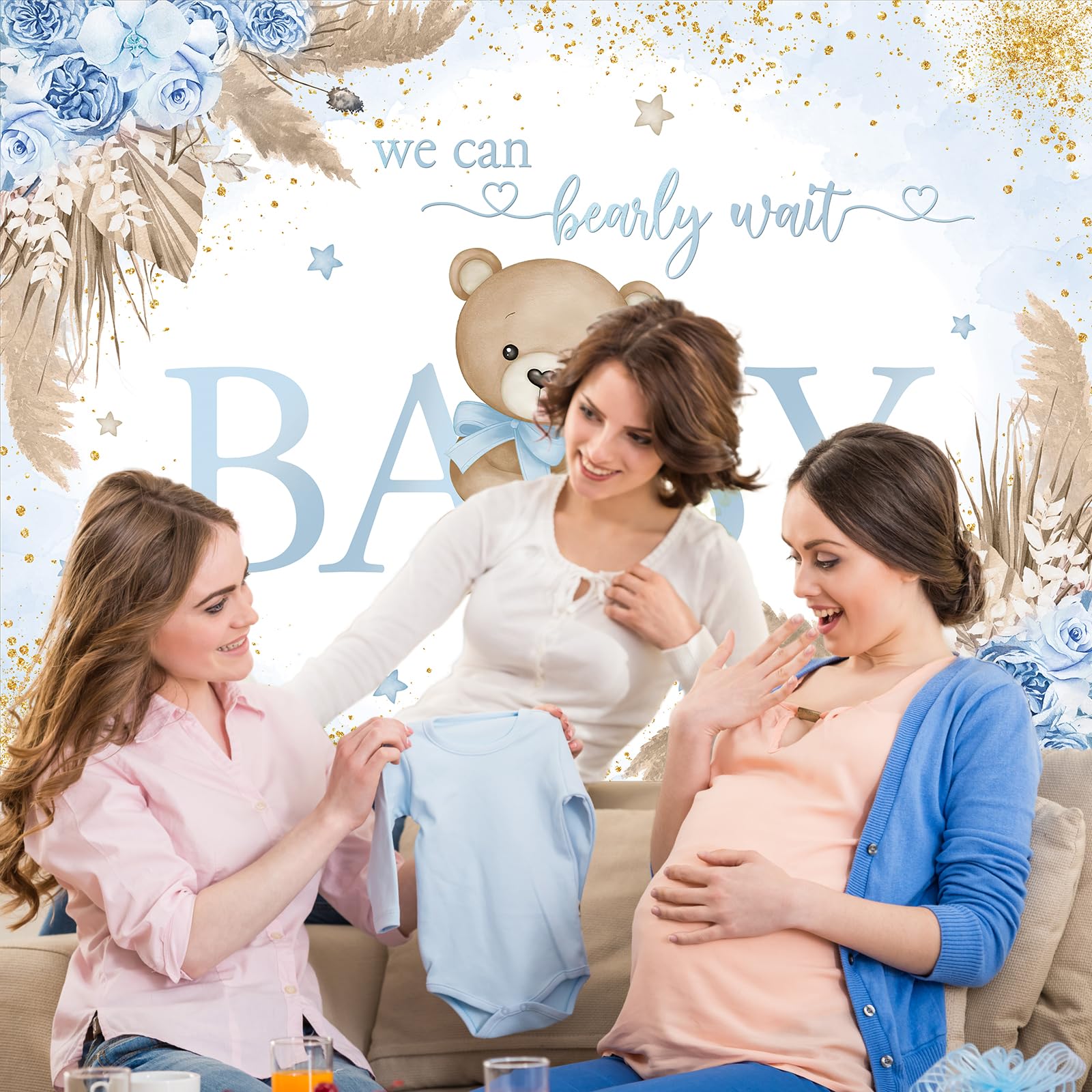 Mocsicka Girl Bear Backdrop Pink Boho Pampas Grass Background We Can Bearly Wait Baby Shower Party Cake Table Decoration Photo Booth Props (7x5ft)