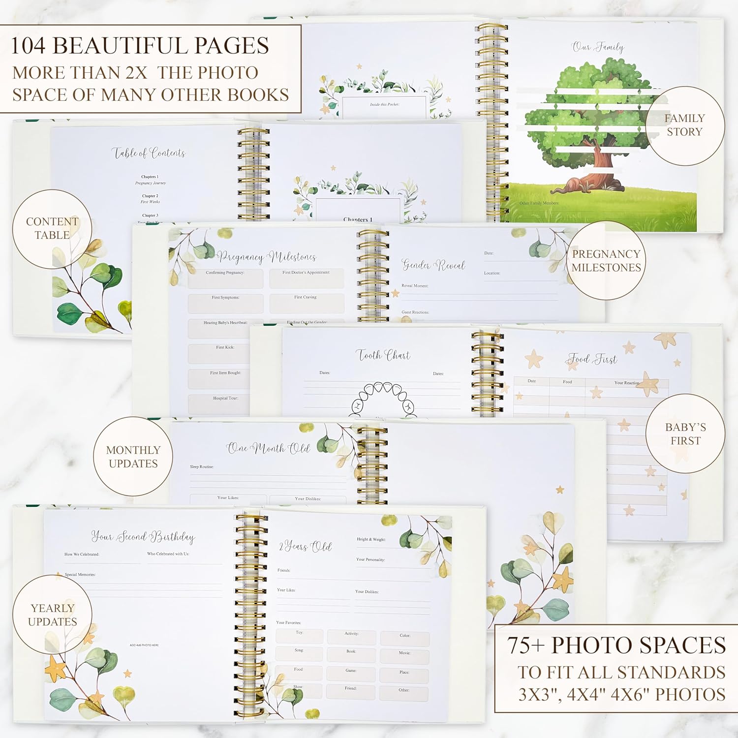 - [EMBRACE EVERY MEMORY]: Elevate your journey with our exceptional memory book. Featuring extended a pregnancy section, over 60 photo spaces, and six keepsake folders, it's a treasure trove of memories. This versatile book doubles as a baby photo album and as a baby scrapbook, ensuring your little one's journey is captured in extraordinary detail. Make every moment unforgettable.