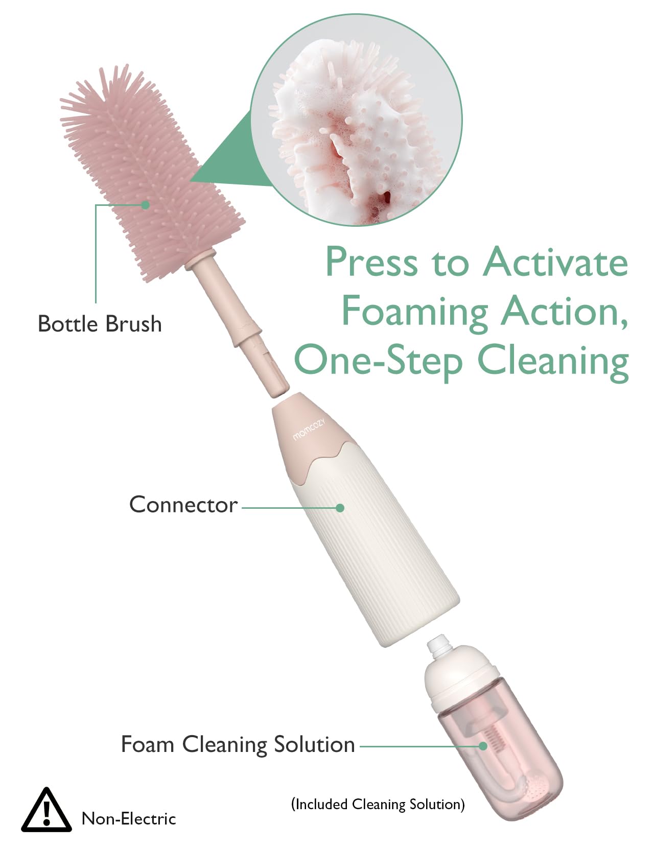 Momcozy Bottle Brush Kit, Innovative Push-Press Design for Better Cleaning - Baby Bottle Cleaner Brush for Baby Bottle, Breast Pumps, Nipples, and More - Can Generate Foam for Better Cleaning, Pink