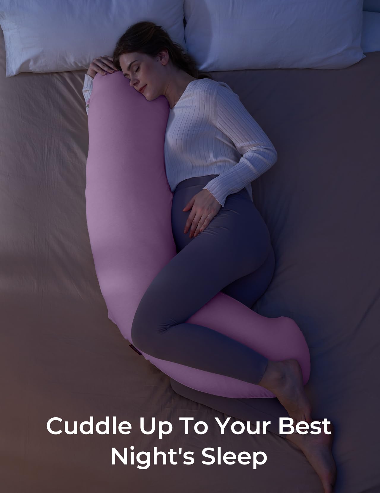 - Perfect Side-Sleeping Pillow for Expecting Moms: The J-shaped body pillow, filled with soft synthetic fibers, is designed to replace regular bed pillows, providing more targeted support. From head to toe, this pregnancy pillow helps relieve pressure points, letting you relax and recharge while enjoying optimal comfort.