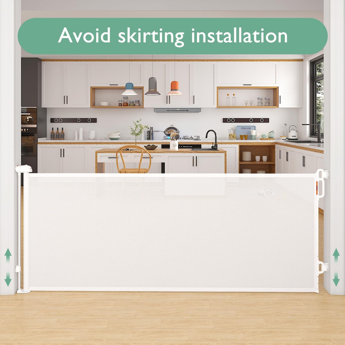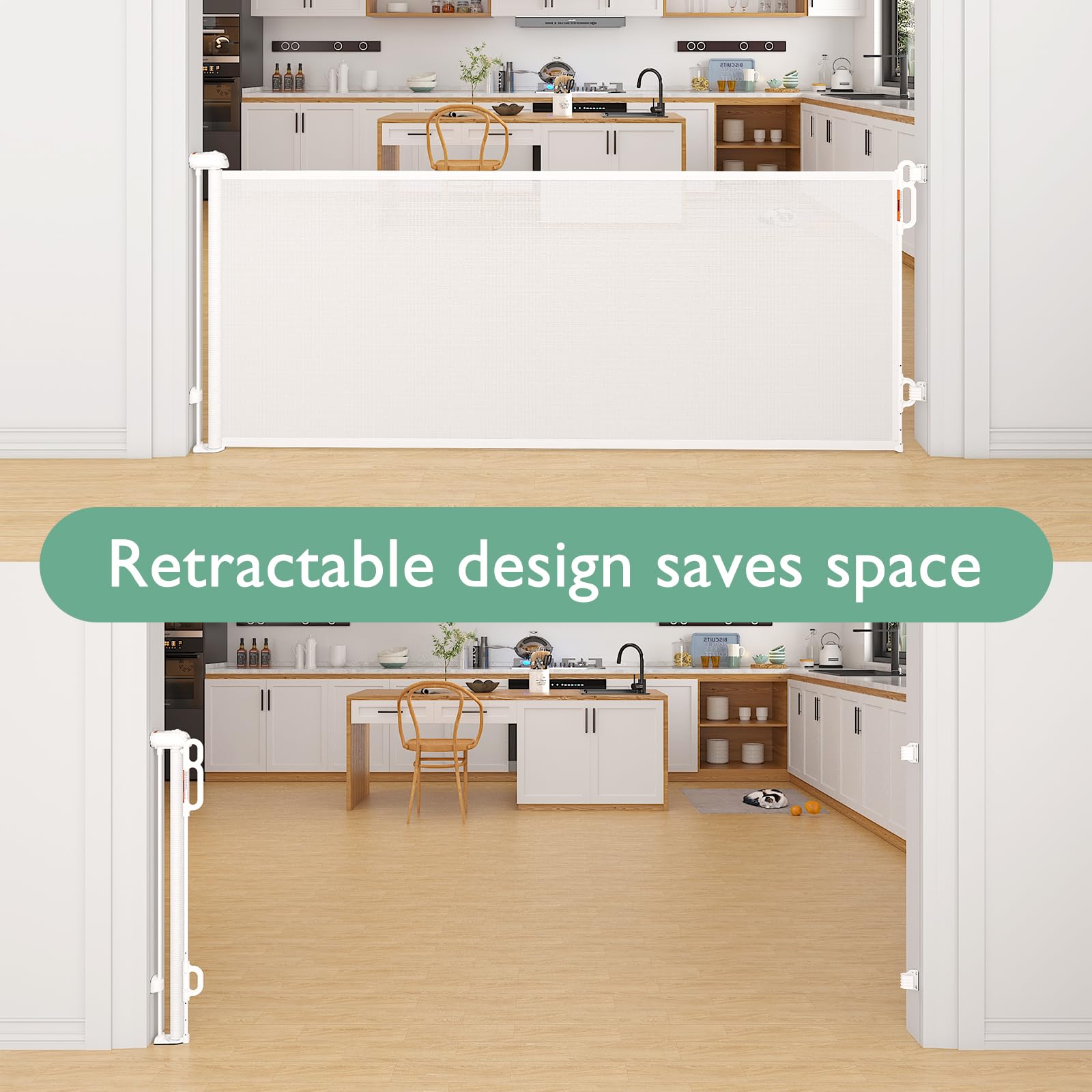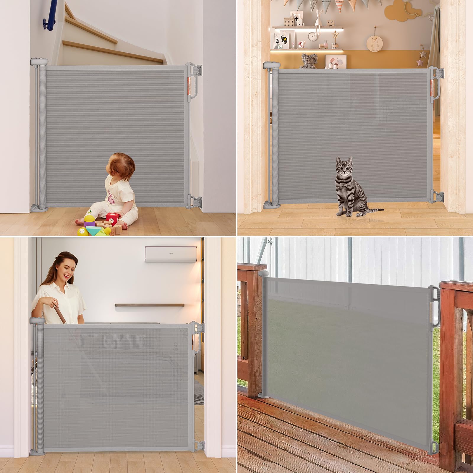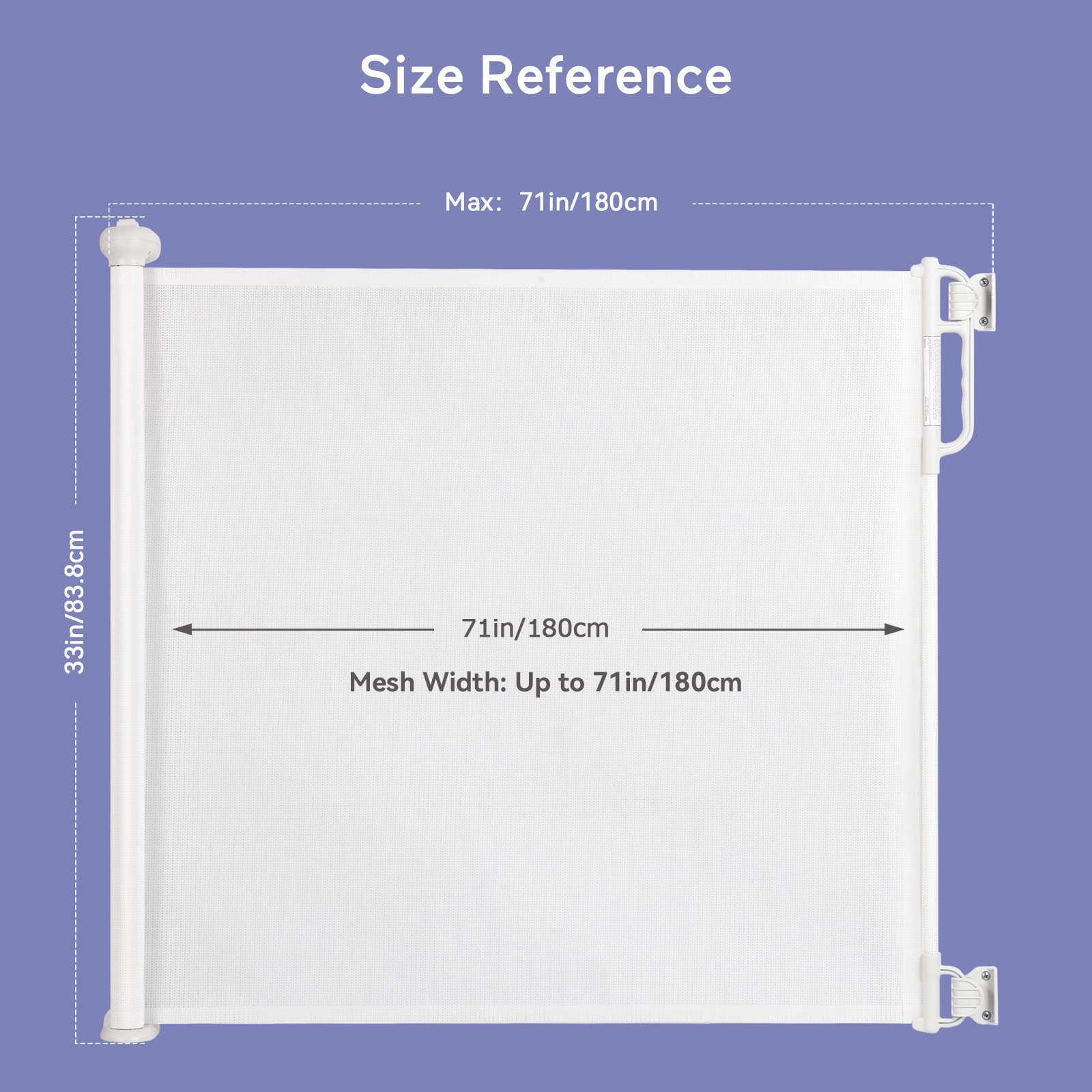 - Retractable Design-Saving Space: This baby gates Fits openings up to 55" wide and is 33" tall which can be adjusted to fit your openings according to your needs. Mesh can be completely retracted away when not in use.