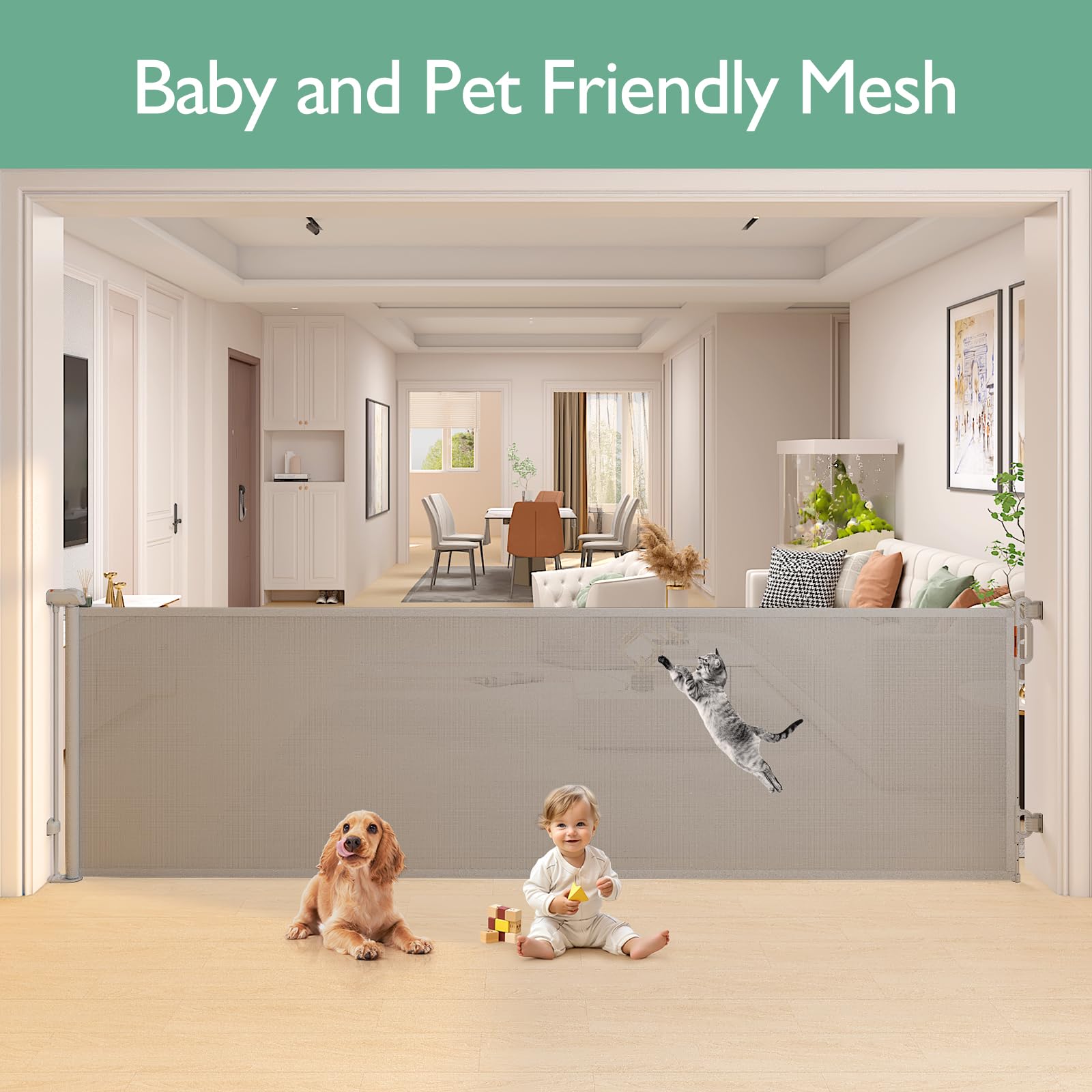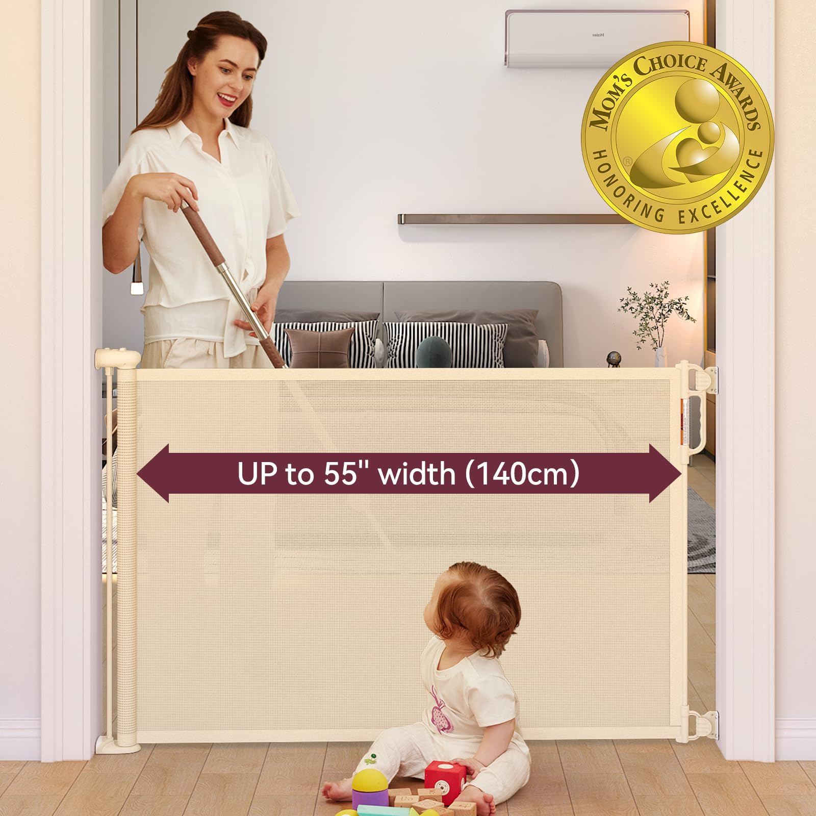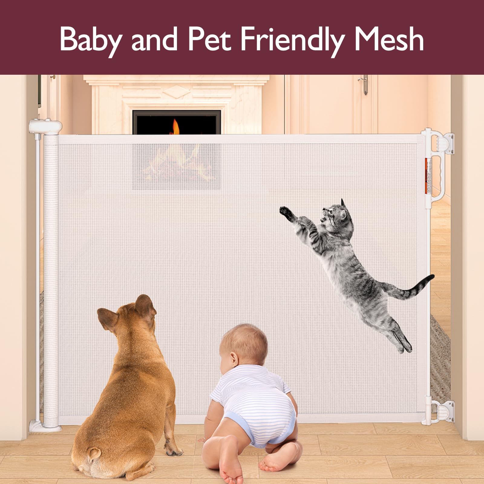 - Retractable Design-Saving Space: This baby gates Fits openings up to 55" wide and is 33" tall which can be adjusted to fit your openings according to your needs. Mesh can be completely retracted away when not in use.