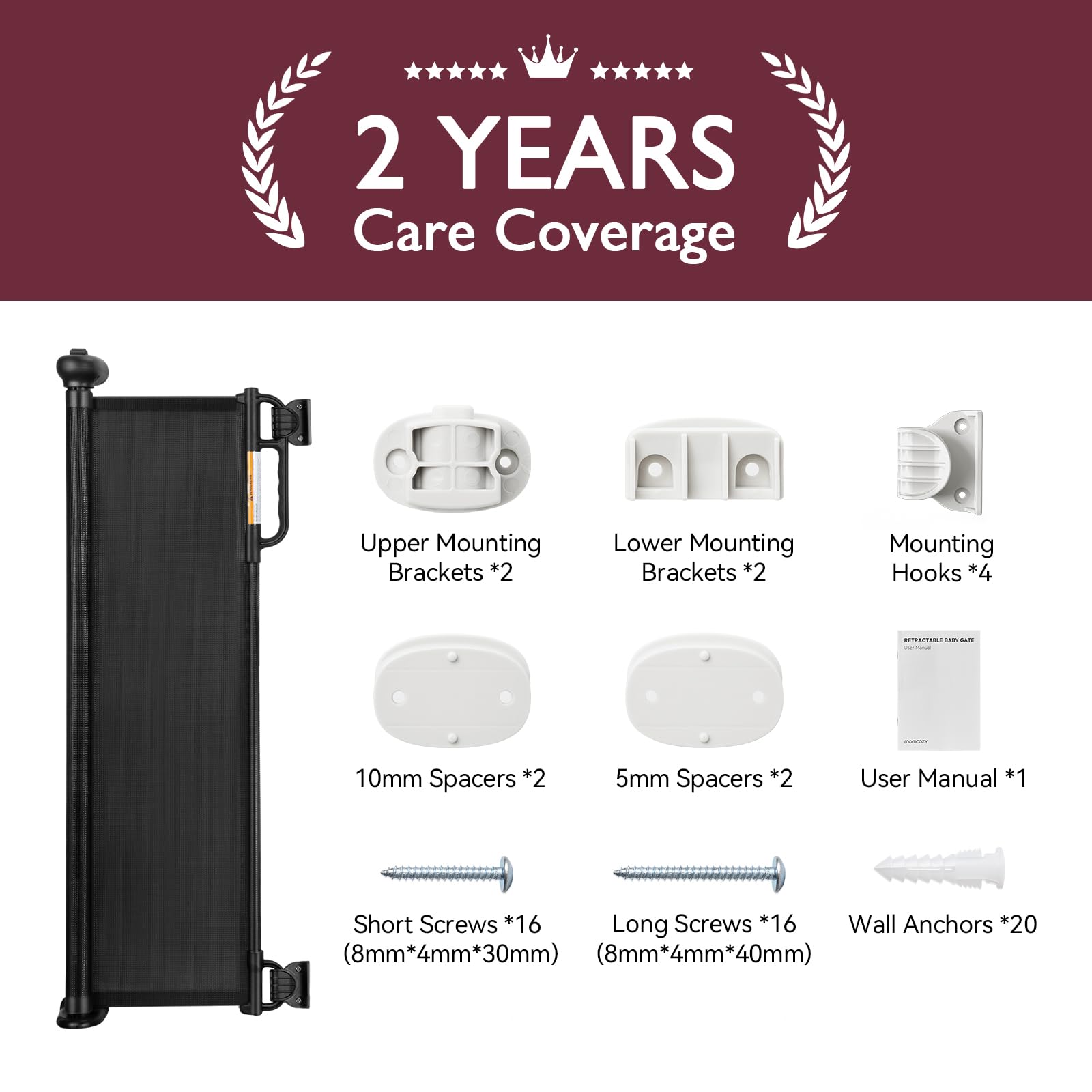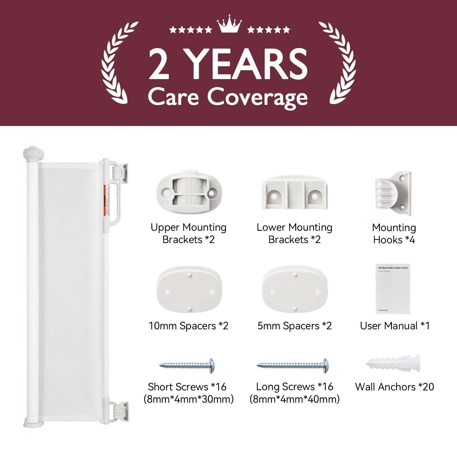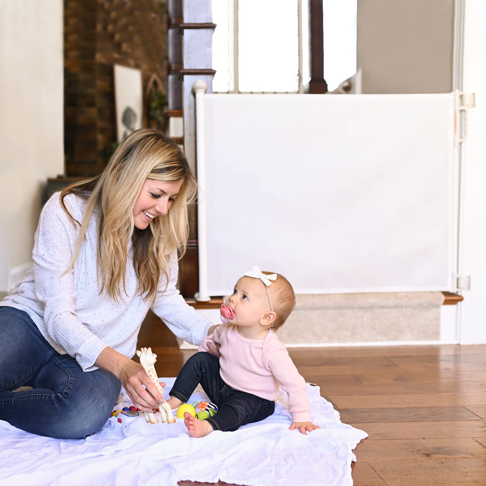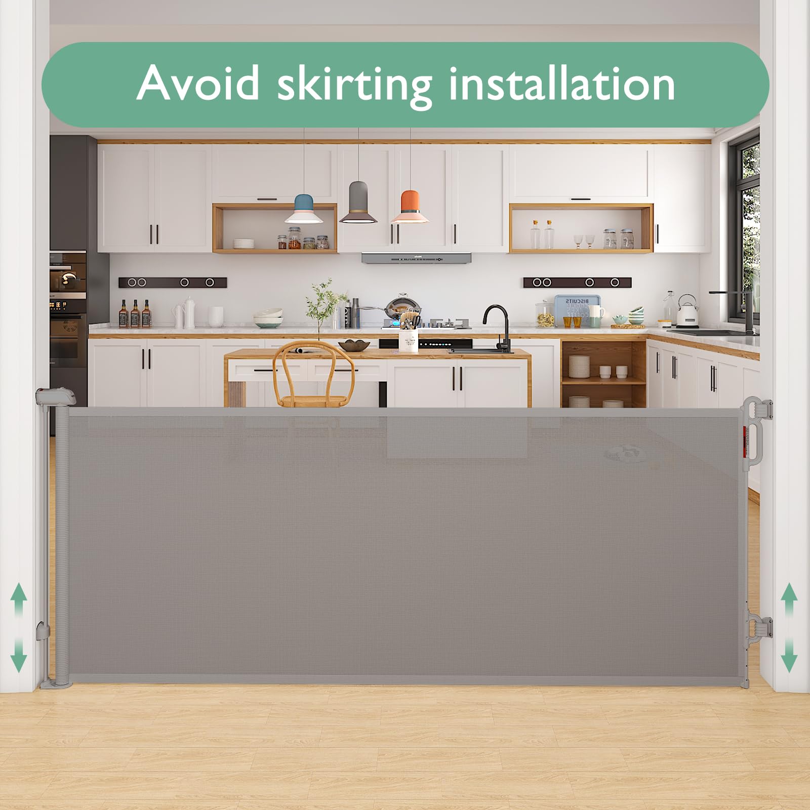 - Retractable Design-Saving Space: This baby gates Fits openings up to 55" wide and is 33" tall which can be adjusted to fit your openings according to your needs. Mesh can be completely retracted away when not in use.