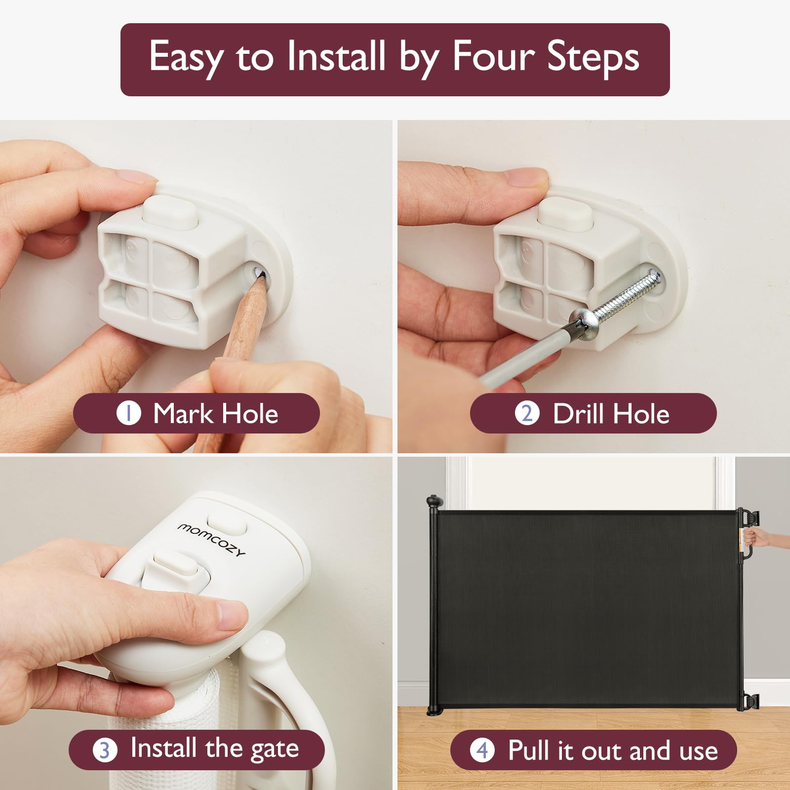 Momcozy Retractable Baby Gate, 33" Tall, Extends up to 55" Wide, Child Safety Baby Gates for Stairs, Doorways, Hallways, Indoor, Outdoor