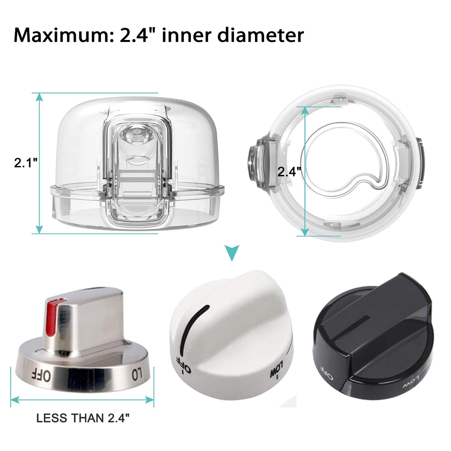 - 2. [Universal Size] In order to fully cover more different shapes and sizes of gas stove knobs, the size has been upgraded to fit gas stove and oven knobs with an inner diameter of less than 2.4 inches.