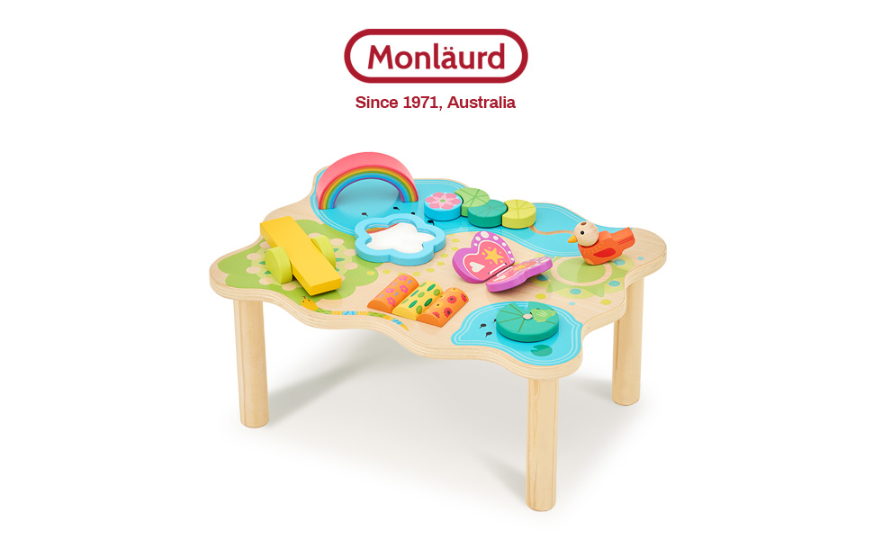 Monläurd® Montessori Wooden Activity Center & Play Table for Baby to Toddlers, Activity Table with Motor Skill Development, Daycare Essentials for Early Learning