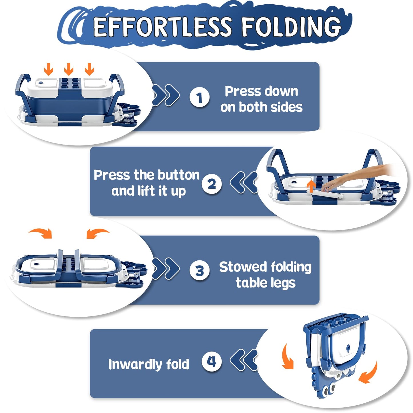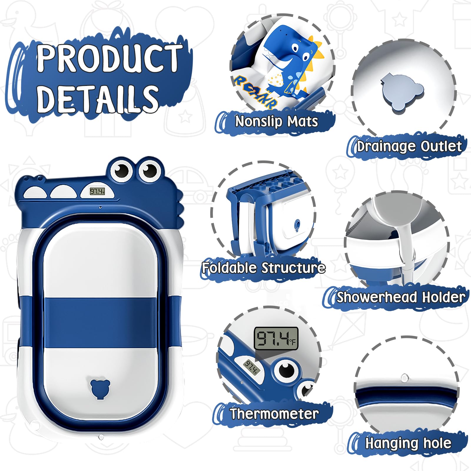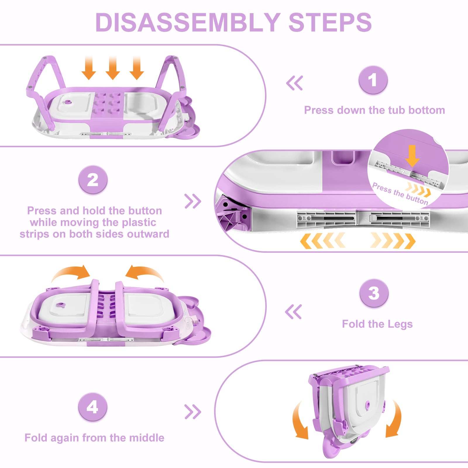 - 【Double-Fold Collapsible Design】Our upgraded baby bath tub can be effortlessly folded in just two steps to a thickness of under 4 inches. It even folds in half, enabling convenient storage in any corner, making it a space-saving solution.