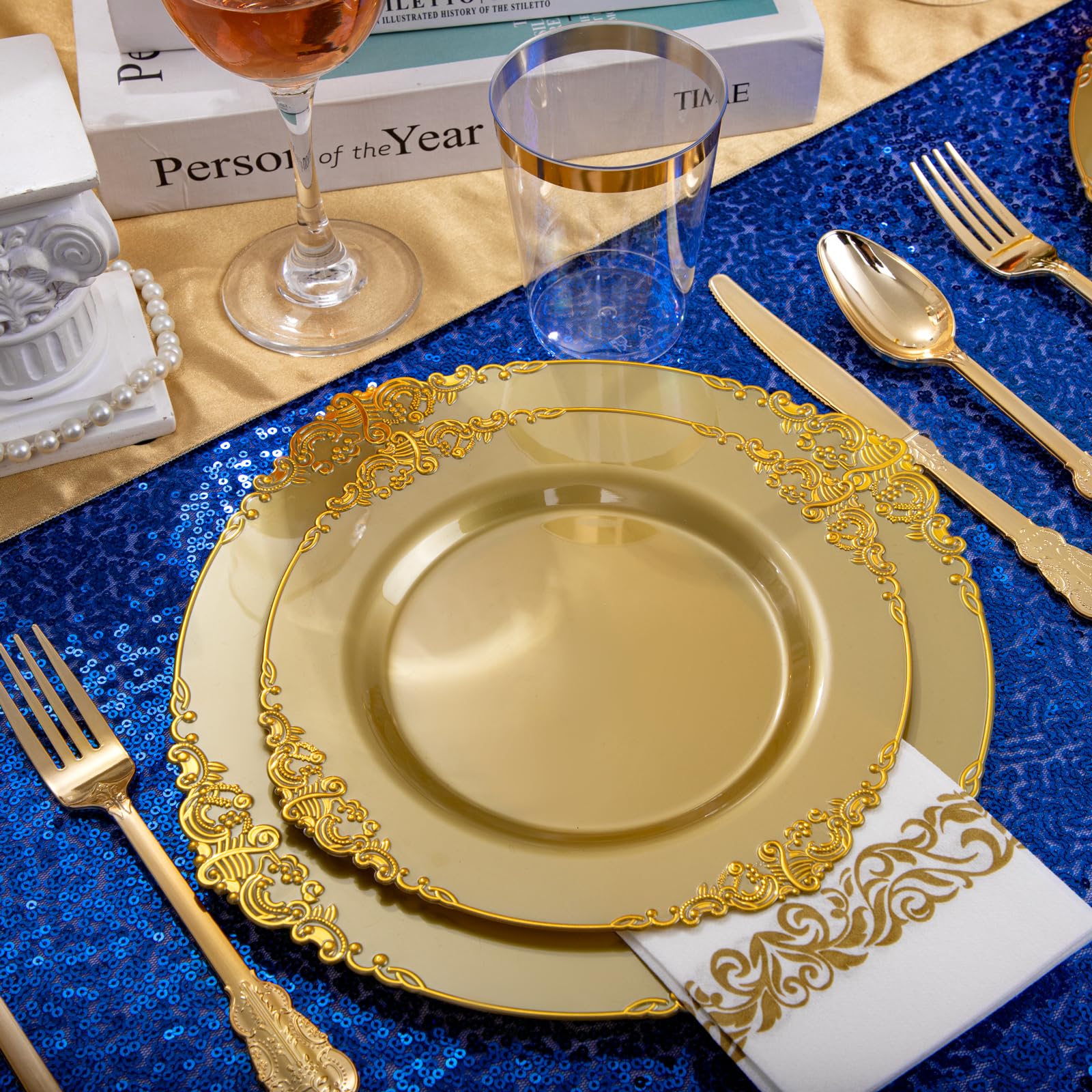 These gold plastic plates are based on white plastic plates, with rose gold rim, showing nobility and elegance.