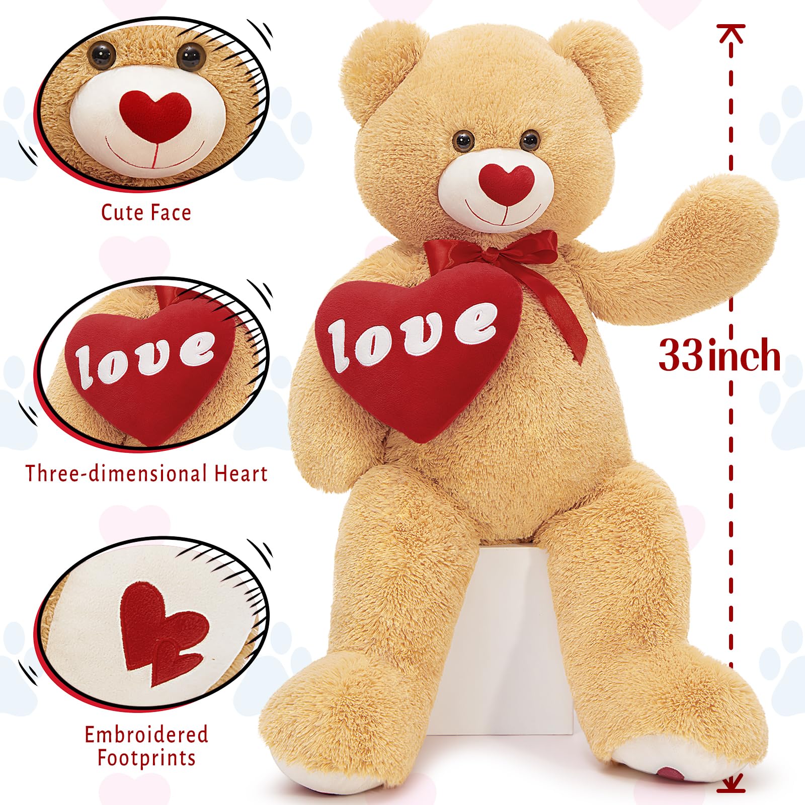 - Extra-Large & Huggable: Standing an impressive 51 inches tall, this oversized teddy bear stuffed animal is a big warm hug waiting to happen! Whether you're gifting it to a child or adding a cozy touch to your room, its life-size presence brings instant joy and comfort to any space