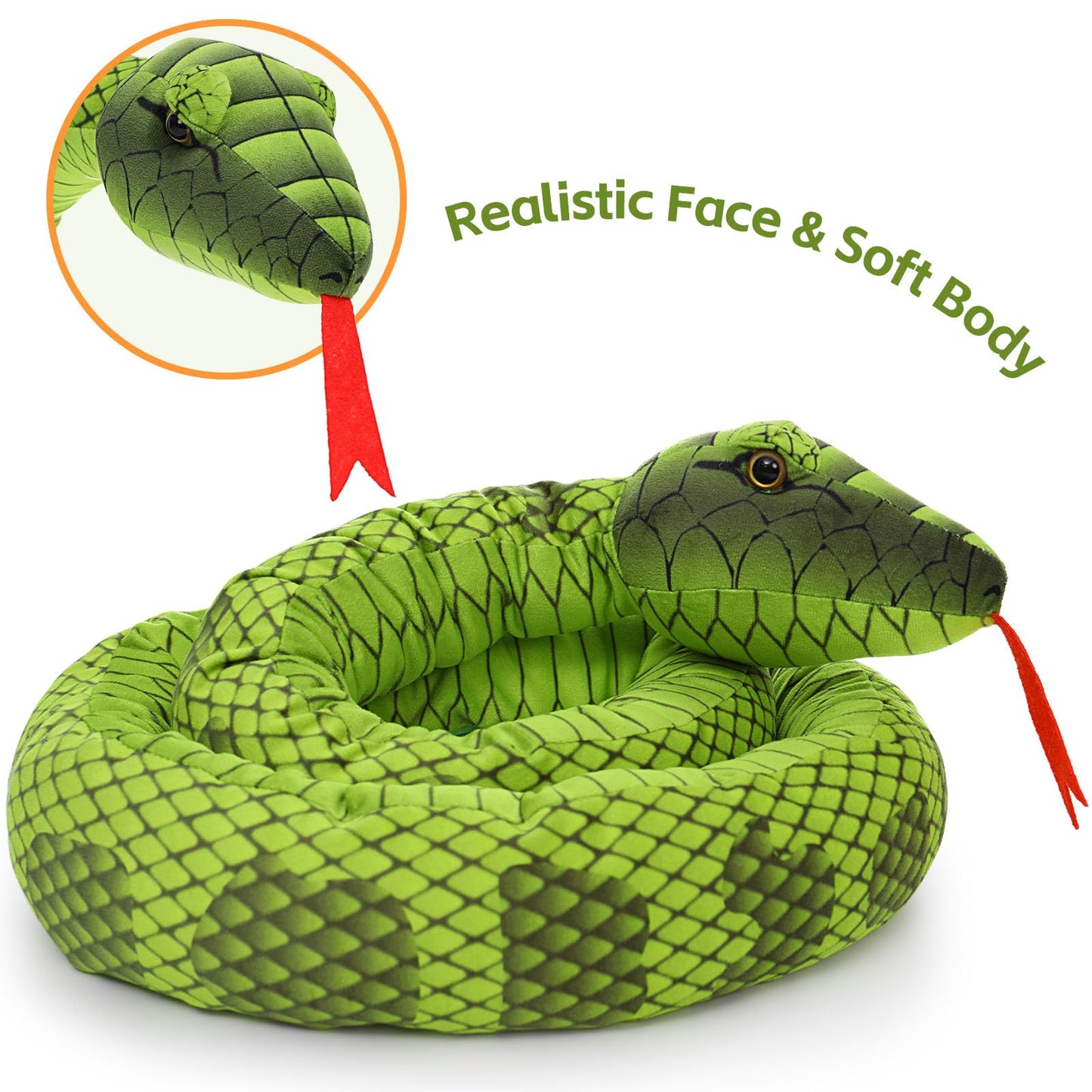 - Realistic Snake Plush Toy: This brightly colored giant stuffed snake stands out! Resulting in a soft and realistic texture, red tongue, and bright eyes that mimic the appearance of a real boa constrictor, and intricate markings add to the plush's lifelike quality, it's a toy that's sure to delight kids and adults alike