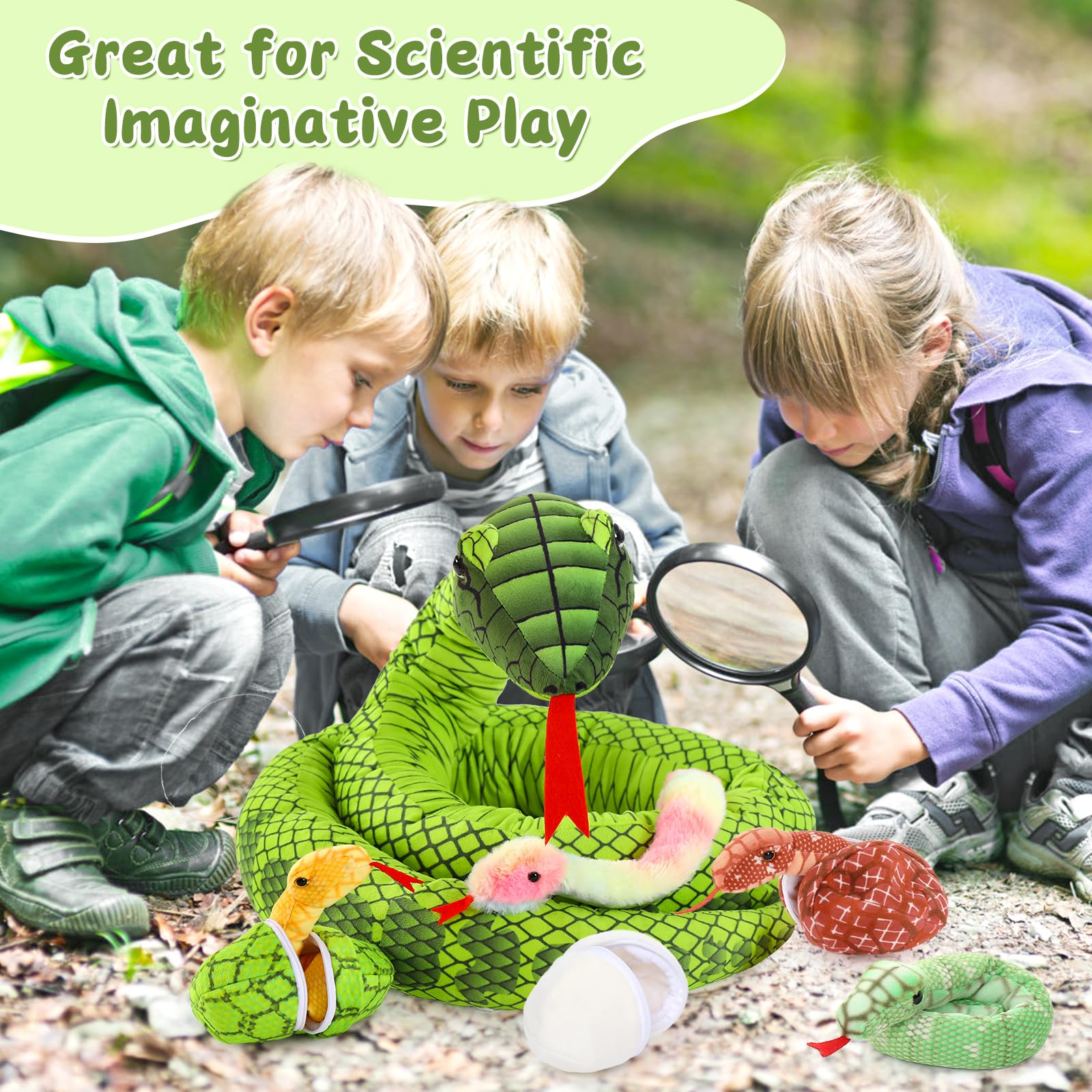 - Stimulate Imagination: Accompanied by the mommy stuffed snake toy and the four little cute snake plushies, children will be eager to embark on their exciting jungle explore or create their imaginary adventures, which helps to ignite imagination and enhance intelligence greatly