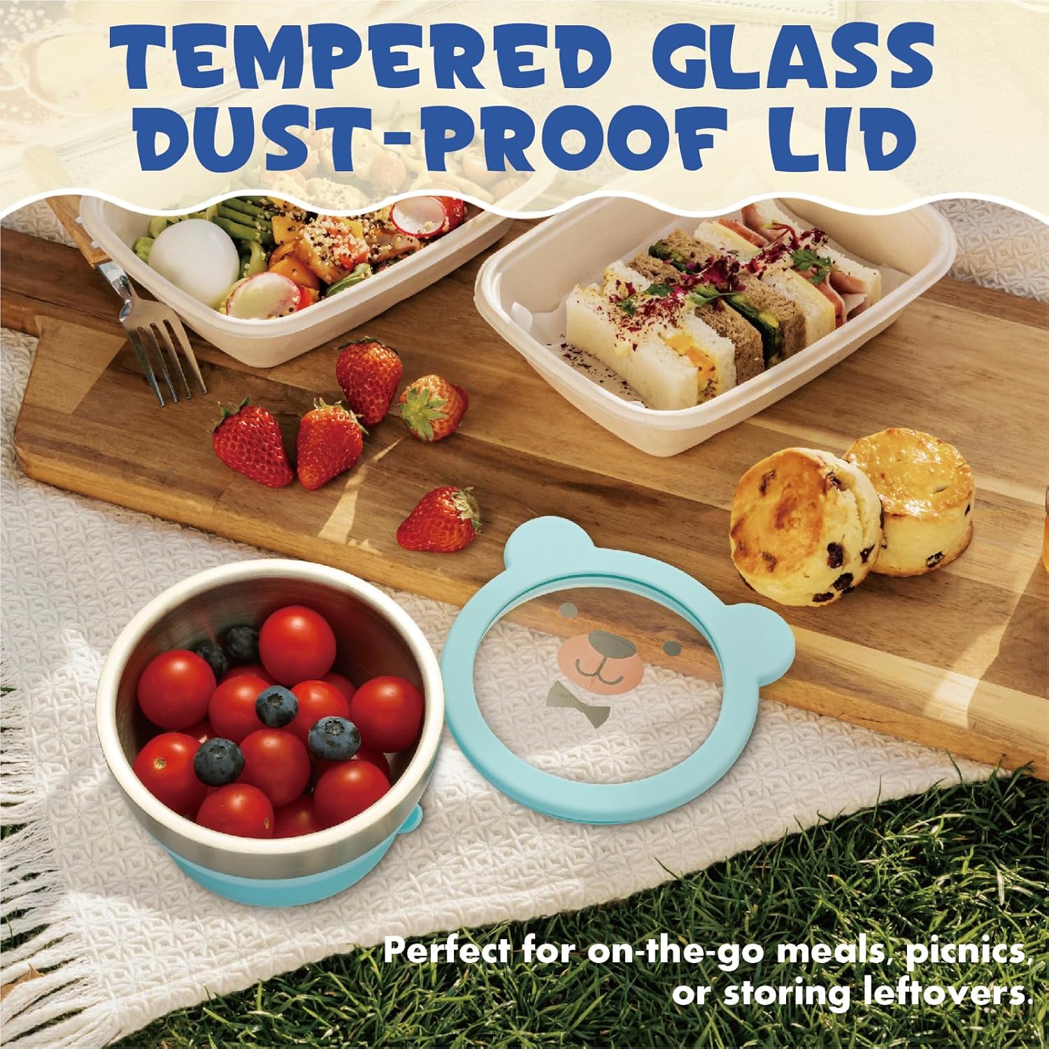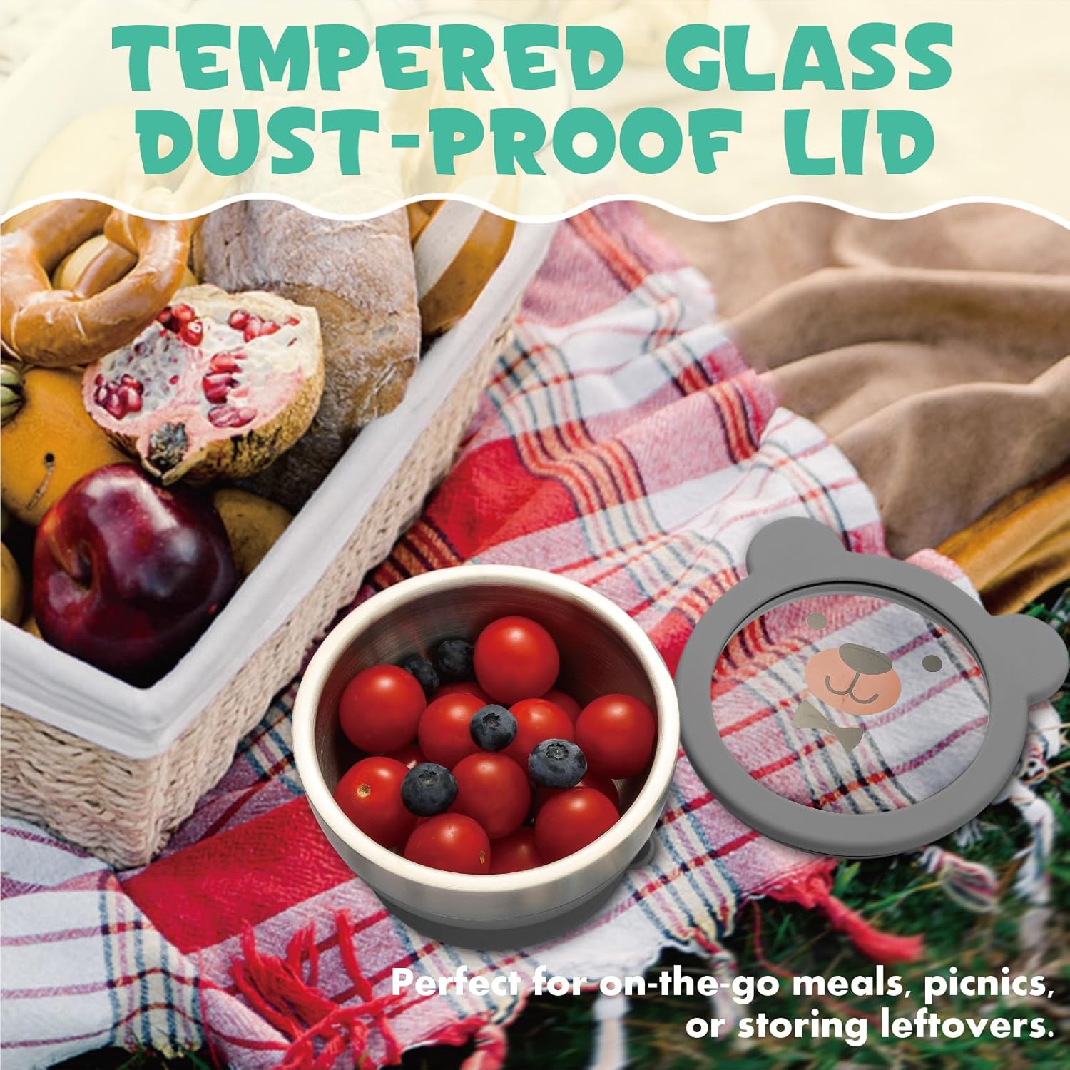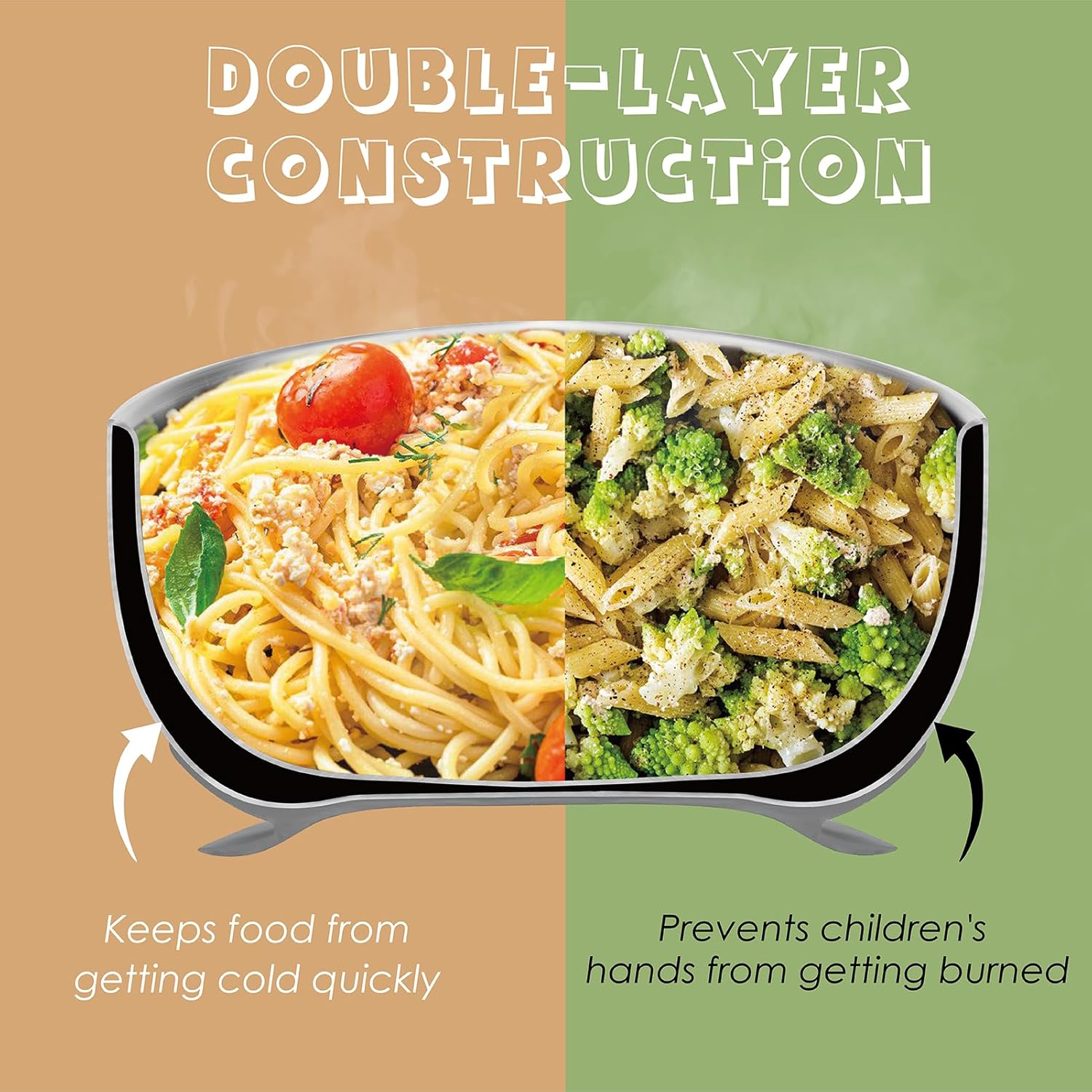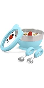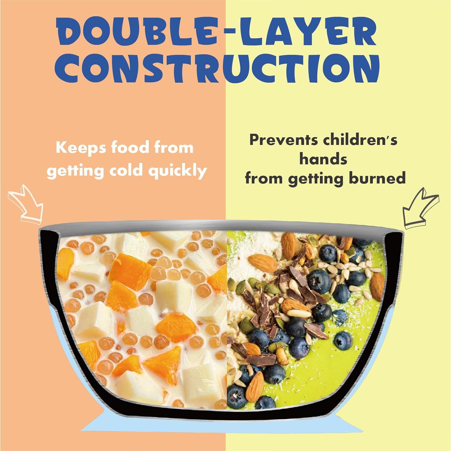 - This insulated baby bowl features a double-layer stainless steel construction that prevents heat transfer and keeps food warm while protecting the baby's hands from scalding. Comes with an airtight lid made of tempered glass and silicone to keep leftovers fresh and you can feed your baby on the go. Our silicone baby feeding bowls are made dishwasher-safe and freezer safe, so just put the silicone suction bowls into the dishwasher after the meal.