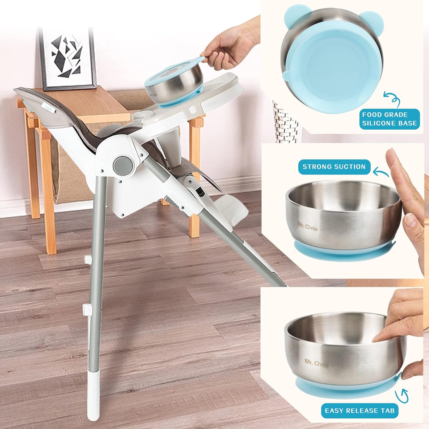 MR.CHOU baby bowl is thickened with double-layer stainless steel, so it won't break even if dropped from the high chair, which has been shown durable in multiple families before it goes on sale.