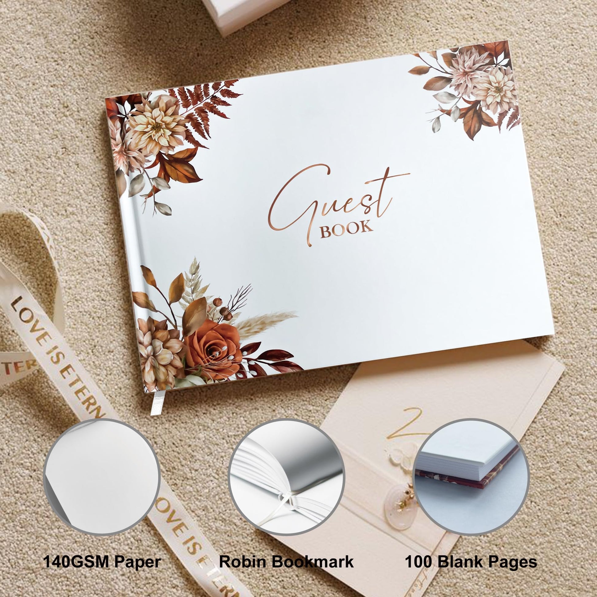 - ✨Premium-Quality Design - 9"*7" hardcover guest book with gold foil title, 100 pages thick blank high-quality paper(140gsm). An excellent choice for wedding guest book