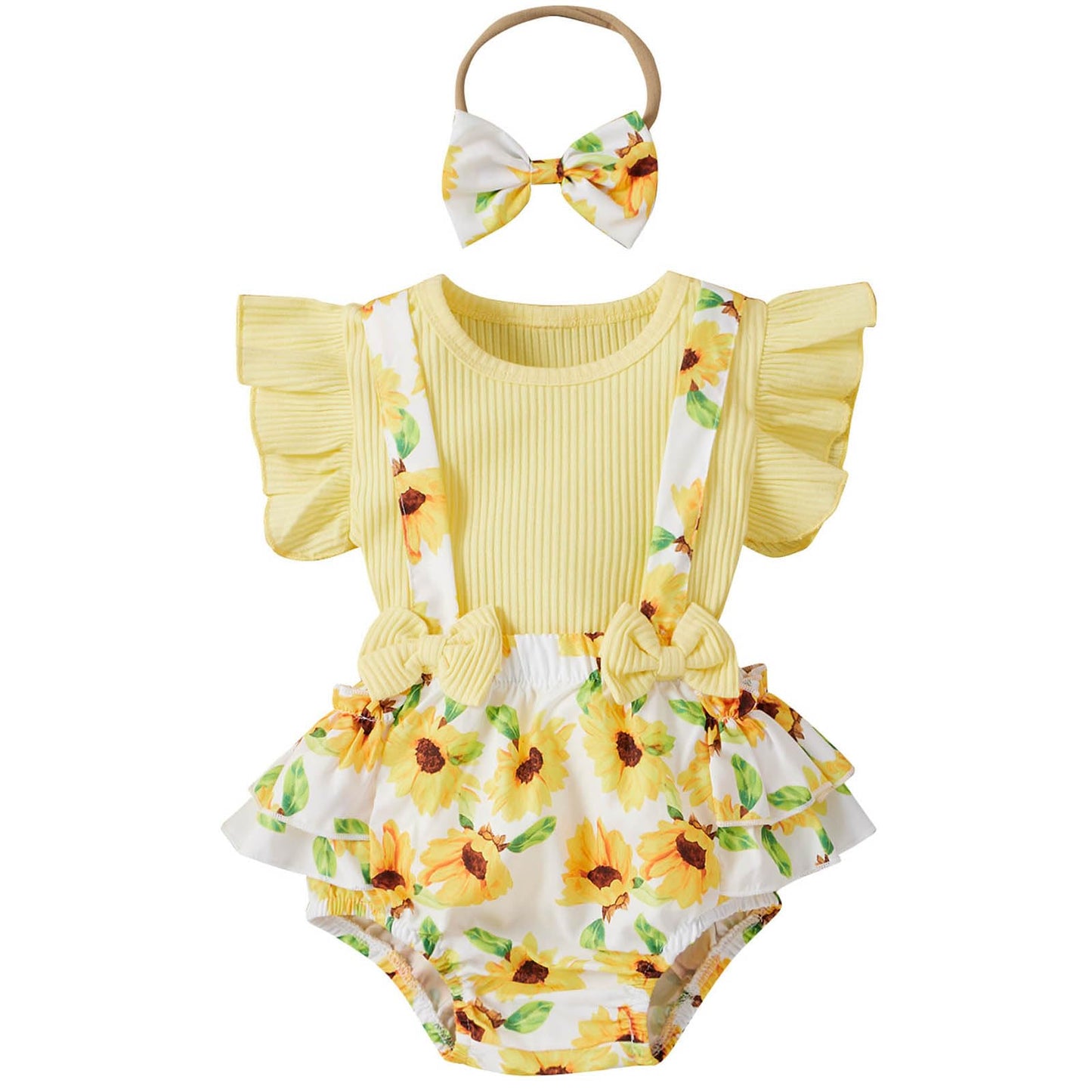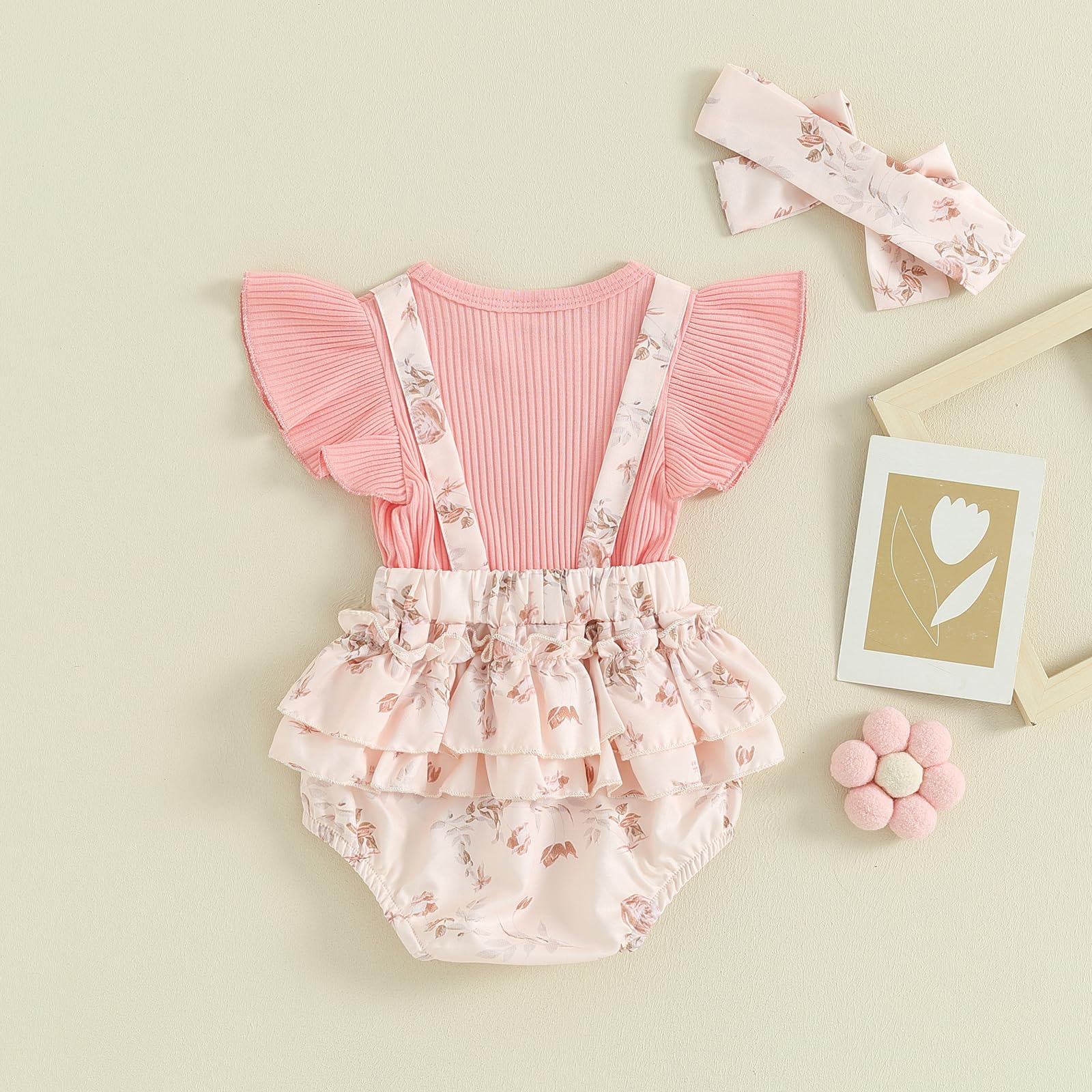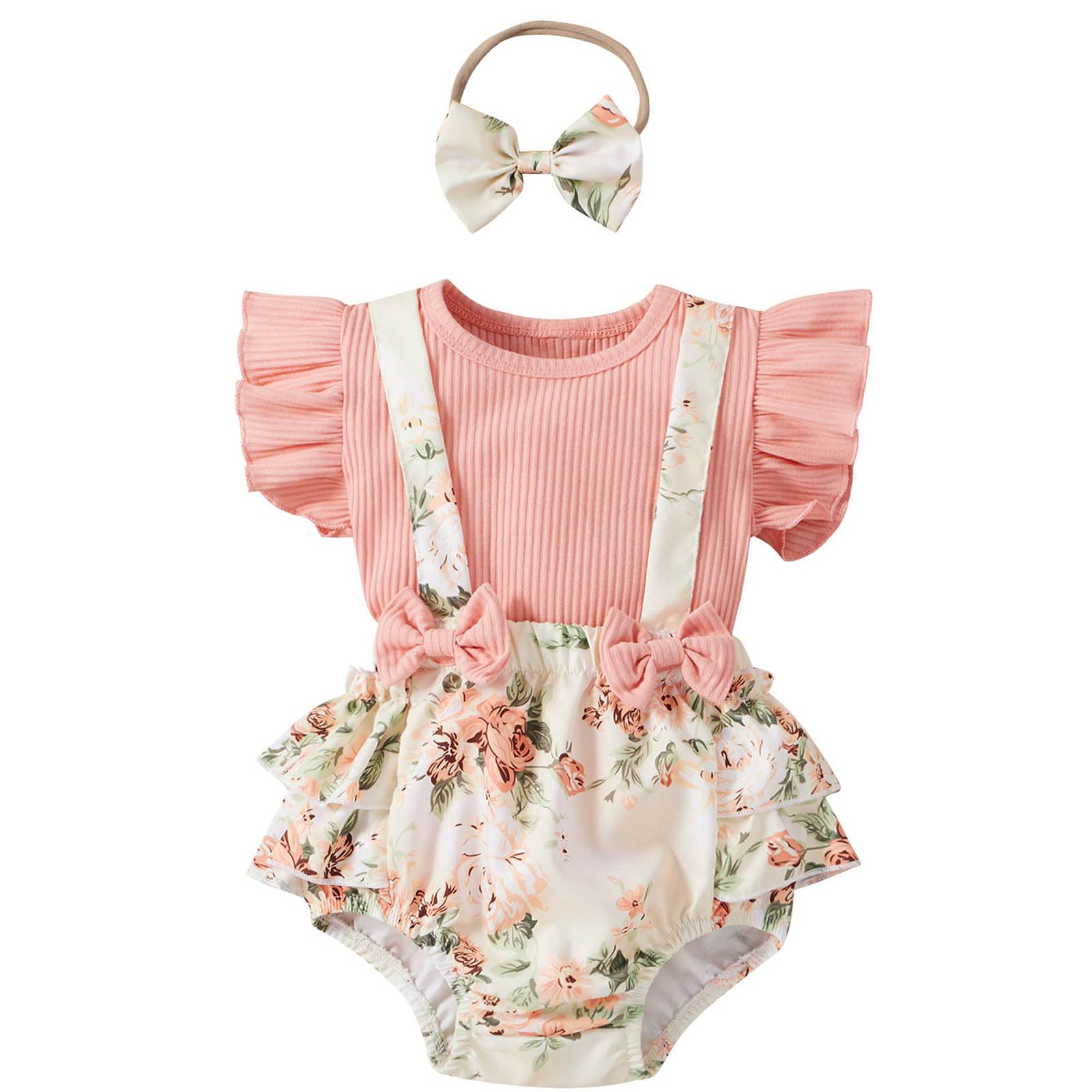 Mubineo Baby Girl Summer Clothes Romper Dress Outfits Cute Ruffle Floral Overalls Skirt Sets Newborn Outfit