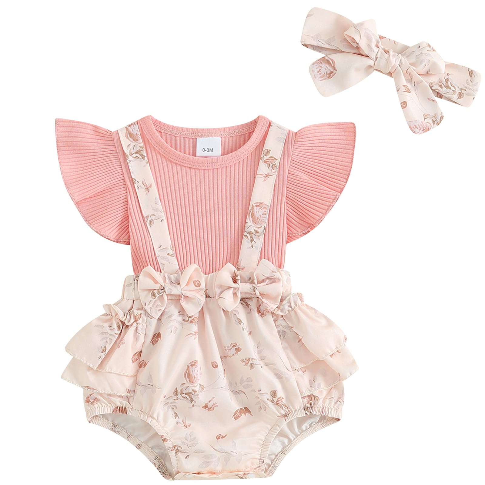 - Ruffles Sleeves, Cute Bowknot Front, Ribbed Knitted Fabric, Newborn Baby Girls Cute Summer Sleeveless Rompers and Skirt Dress One Piece Clothes Outfits with Headband 2 Piece Clothing Sets