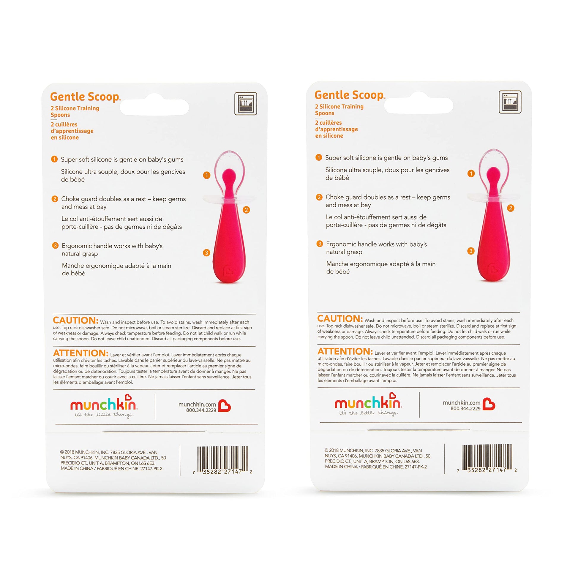 Munchkin® Silicone Scoop™ Trainer Spoons with Choke Guard for Baby Led Weaning, 4 Count, Pink/Purple