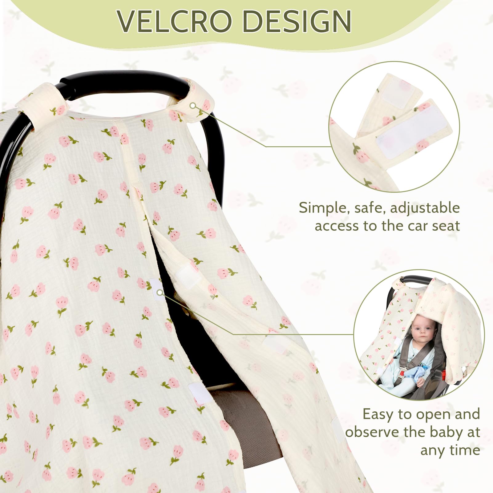 - MUSLIN COTTON: This baby carseat cover with cute patterns is made of 100% muslin cotton, soft, comfortable and breathable, making babies feel very cozy in hot summer