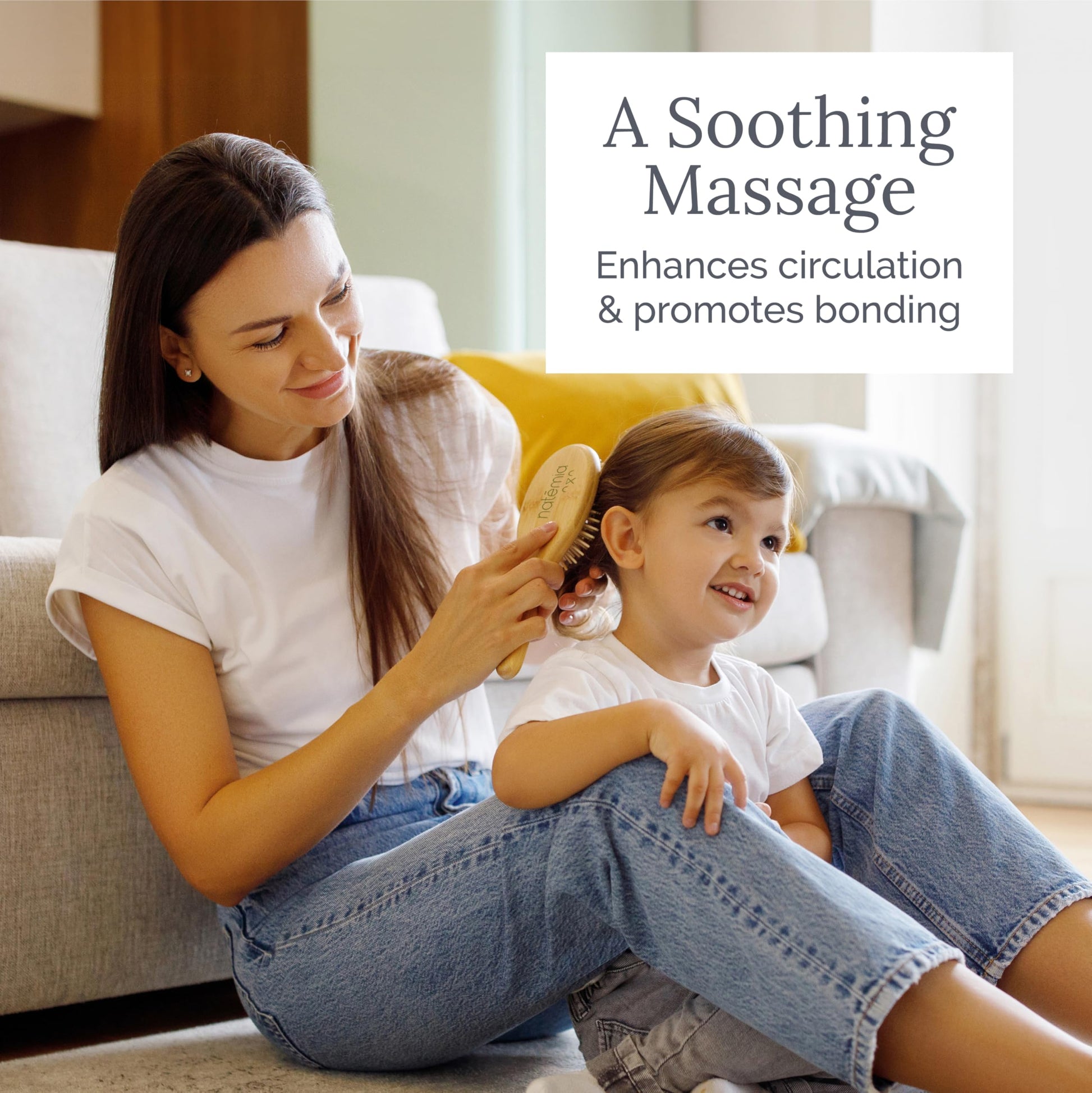 Natemia Wooden Baby Hair Brush | Natural Soft Bristles for Newborns & Toddlers | Gentle Cradle Cap Care | Ideal Baby Registry Gift