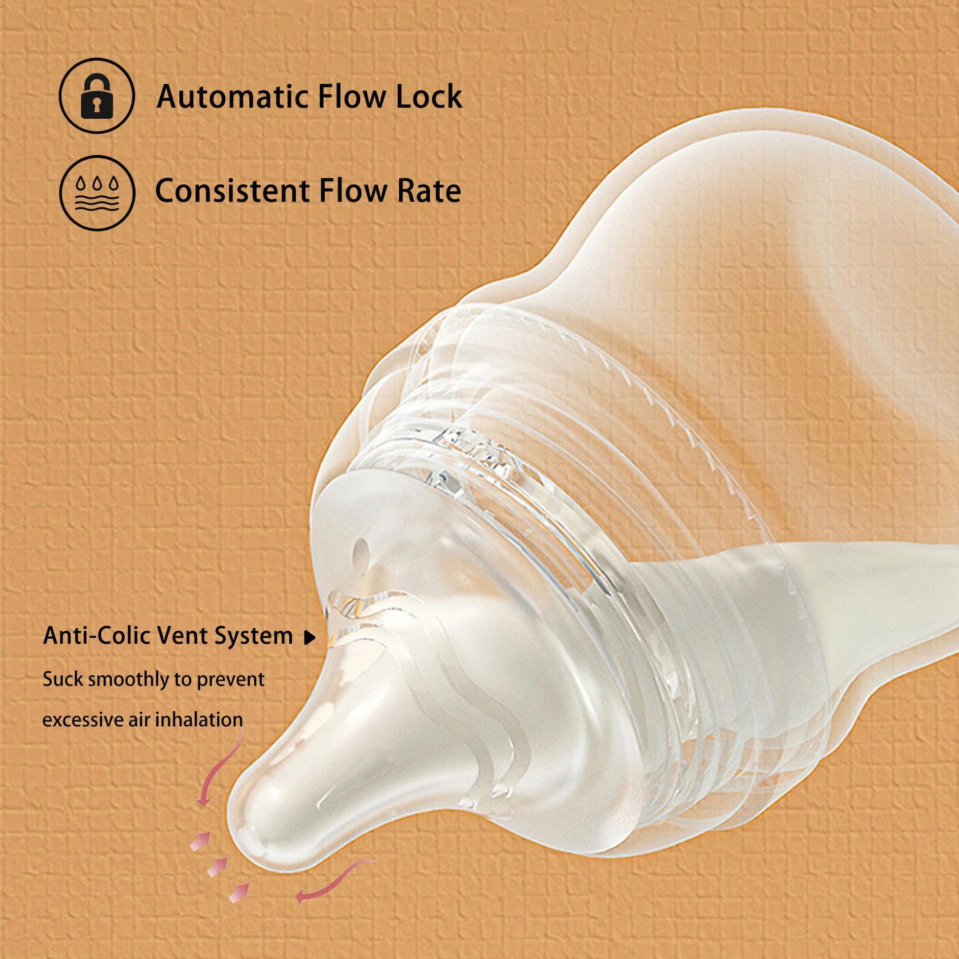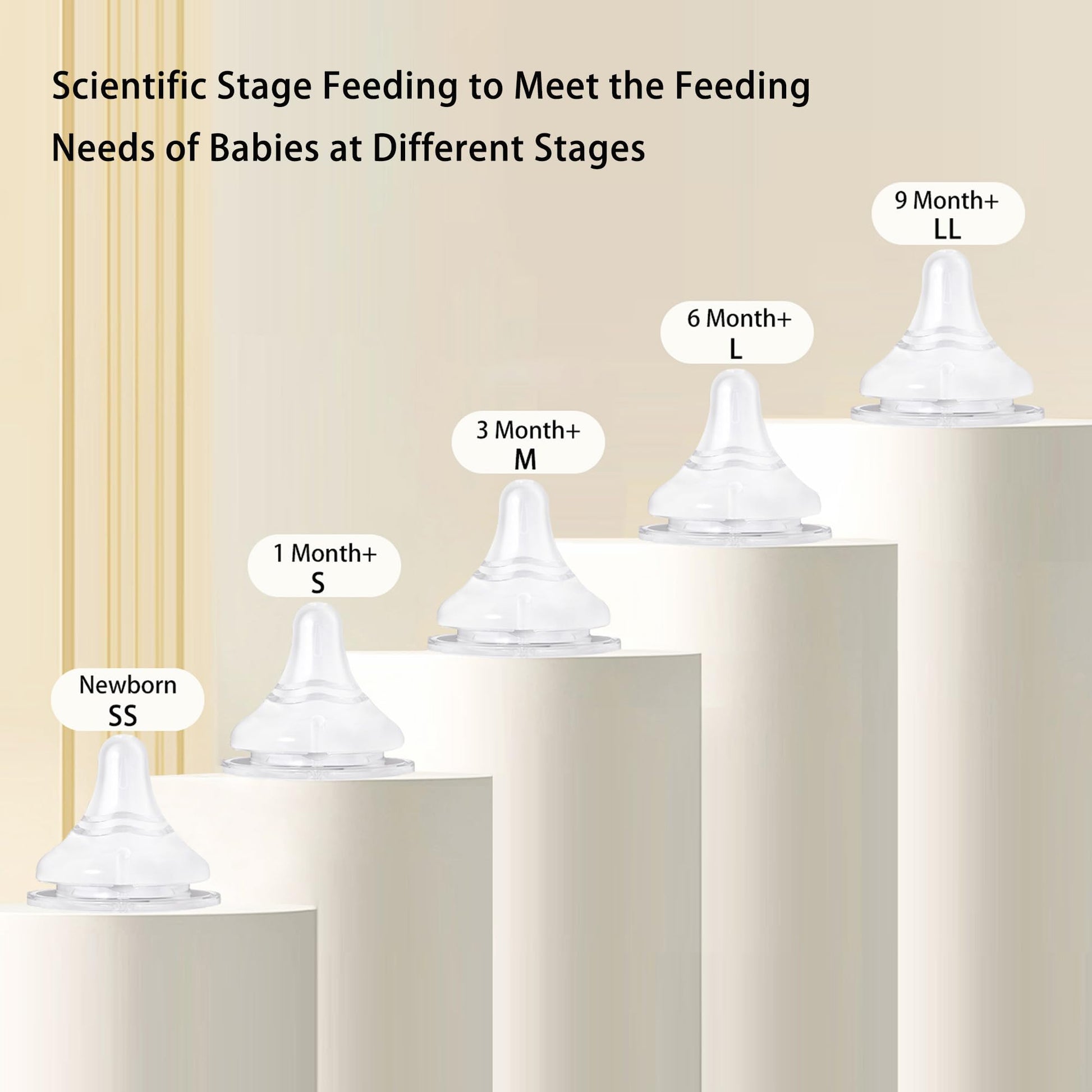 - Soft Natural Nipples: Ultra-soft, food-grade liquid silicone nipples mimic the natural feel of breastfeeding and help breastfed babies suck naturally, the bottom of the nipples has intelligent pressure regulating valve, balance internal and external pressure, milk and air separation, to avoid the baby breathing too much air caused by colic flatulence, and newly designed larger nipples better protect baby's lips.