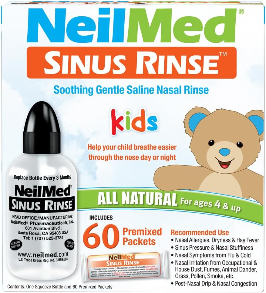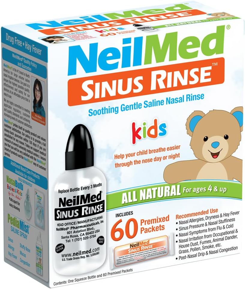 Neilmed's Sinus Rinse, Pediatric, Complete Saline Nasal Rinse Kit 60 Premixed Packets