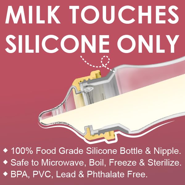- SEAMLESS TRANSITION FROM BREAST TO BOTTLE. Breast-Like nipple shape encourages a proper latch for a more natural bottle feeding experience. MADE OF ULTRA SOFT SILICONE that feels like mom. Eases transition from breast to bottle and back again. Suitable for breastfed babies. Breastfeeding bottles.