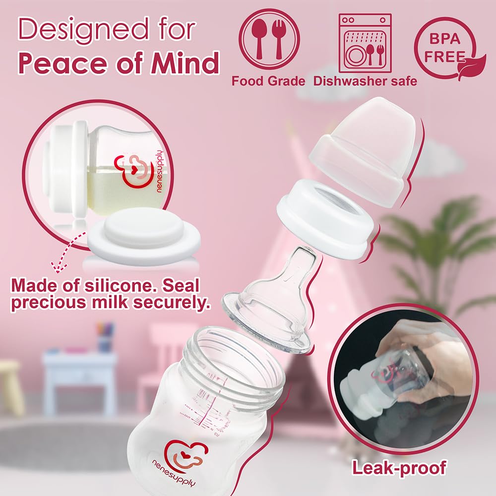 Nenesupply Natural Baby Bottles Newborn Feeding Bottles Slow Flow Breastfeeding Bottle for Breastfed Babies Wide Neck 9oz Anti Colic Level 2 Nipple for 1+ Month Infant Replace Spectra Bottle Pumping