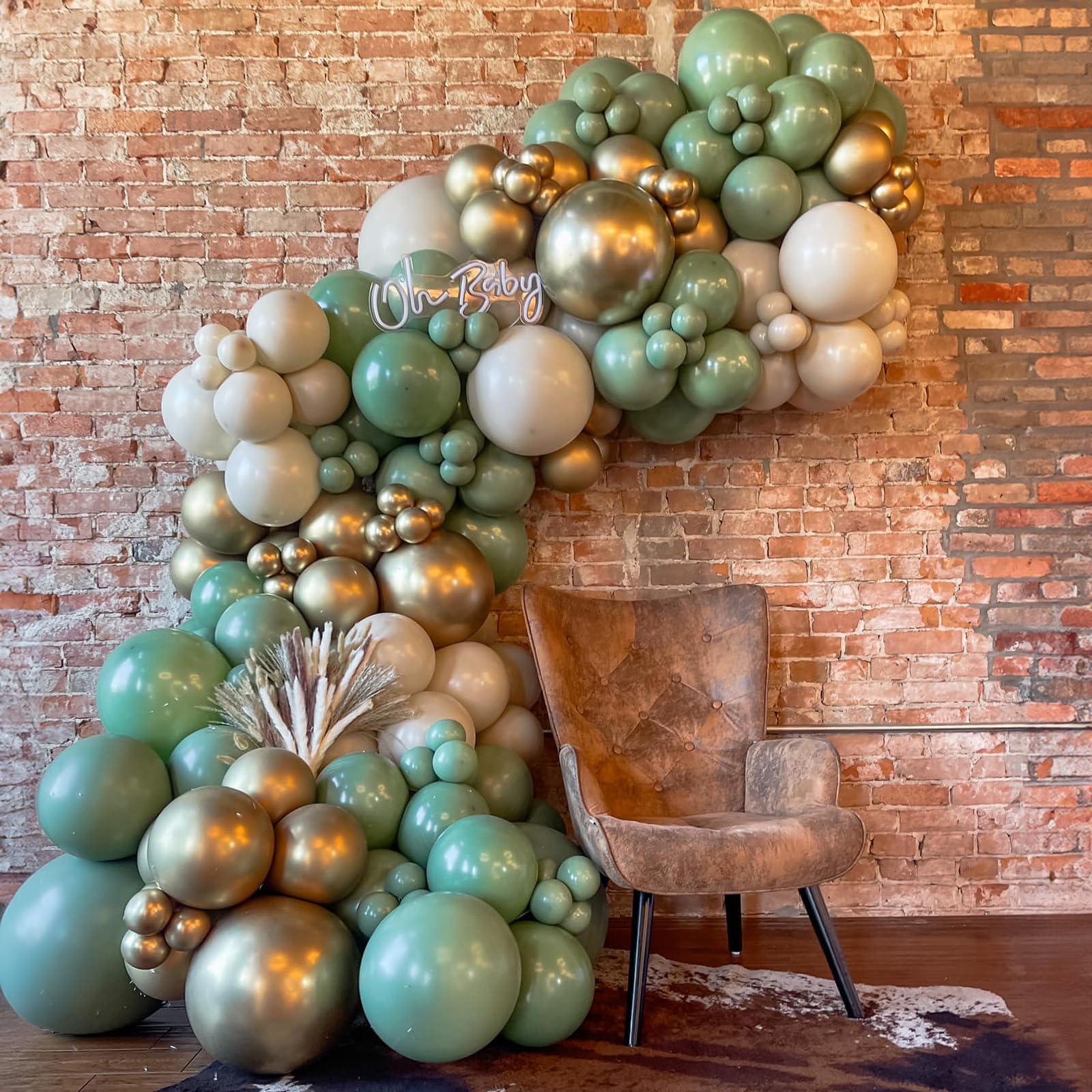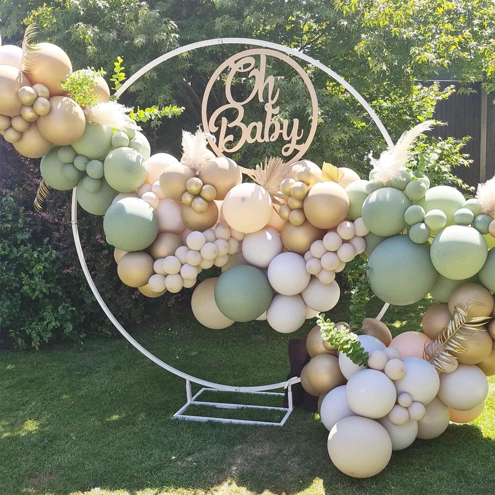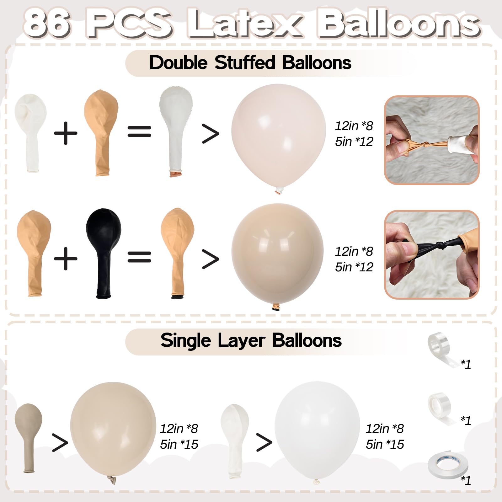 - Package Includes: This set of balloons contains 40pcs double stuffed balloons. This neutral balloon garland kit set includes 32pcs 12" balloons and 54pcs 5" balloons and glue dots, balloon chain, ribbon to help you create stunning, reusable decorations