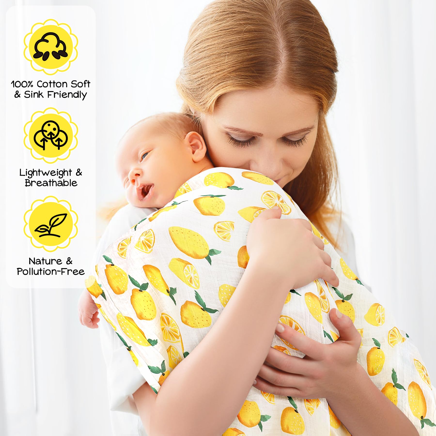 Made from muslin cotton, in our soft swaddle blanket which means they can keep your little one warm and cozy in cooler weather, let their skin breathe in warmer weather, and even swab up spit easily.