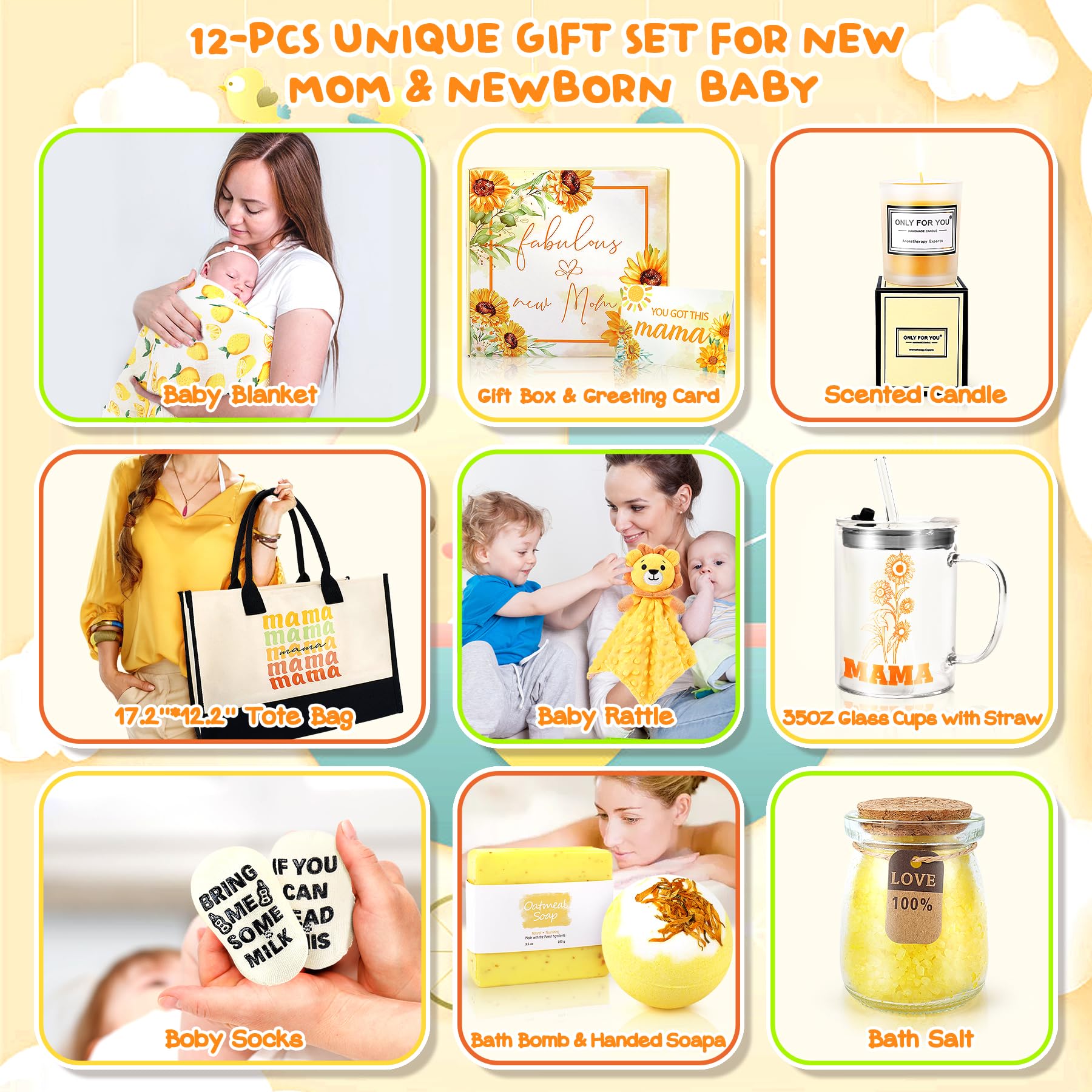 New Mom Gifts & Baby Girl Gift Set for Newborn,12PCS Baby Shower Gifts, Newborn Baby Girl Gifts,Pregnancy Gifts for Expecting Mom,New Mom Care Package After Baby, Pregnancy Gifts for Women and Baby