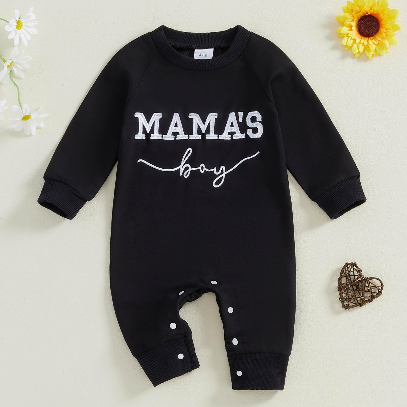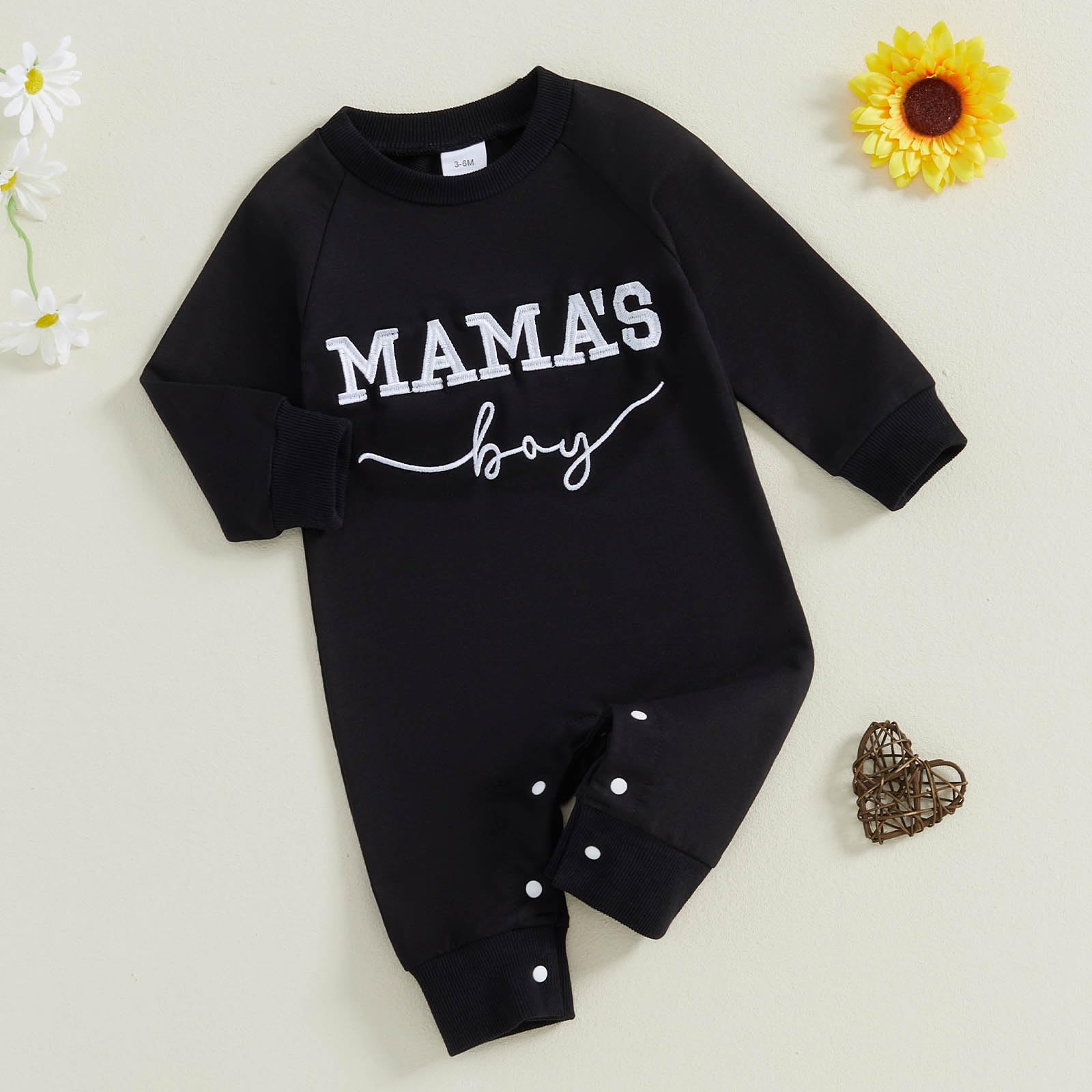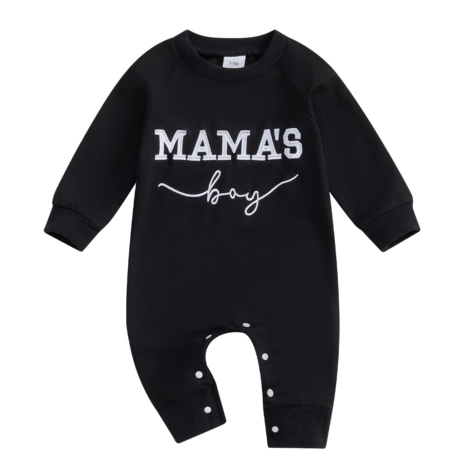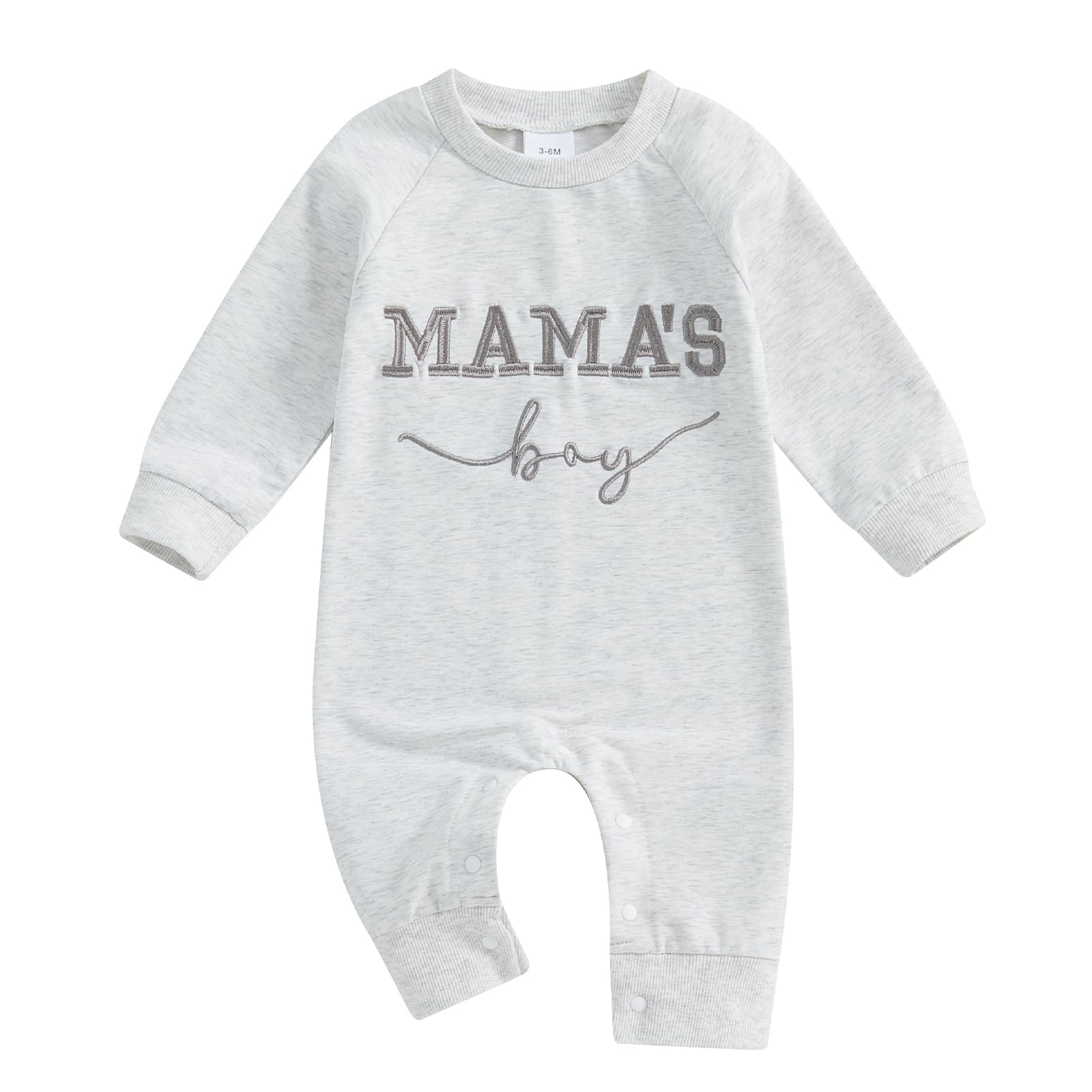 Newborn Baby Boy Fall Outfit Mamas Boy Embroidery Jumpsuit Long Sleeve Crewneck Romper Infant Boy Winter Clothes
