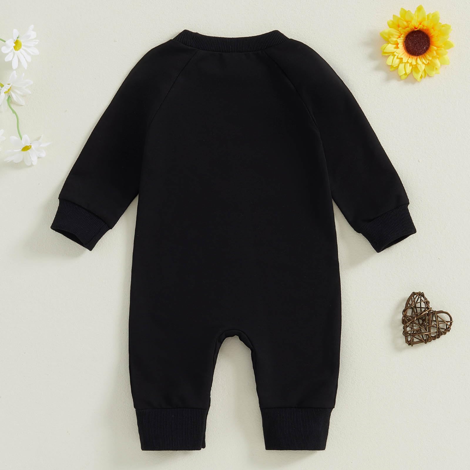 - Design: Infant baby boy fall winter jumpsuit; Long sleeve round neck letter embroidery full length romper; Snap closure at the crotch A great present best for birthday, festivals, holiday, vacation or daily surprise; Super cute baby clothes for boys