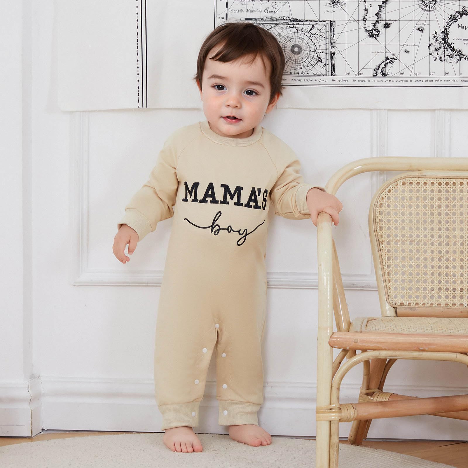 Newborn Baby Boys Girls Romper Long Sleeve Mamas Boy Letter Print Solid Color Bodysuit Jumpsuit